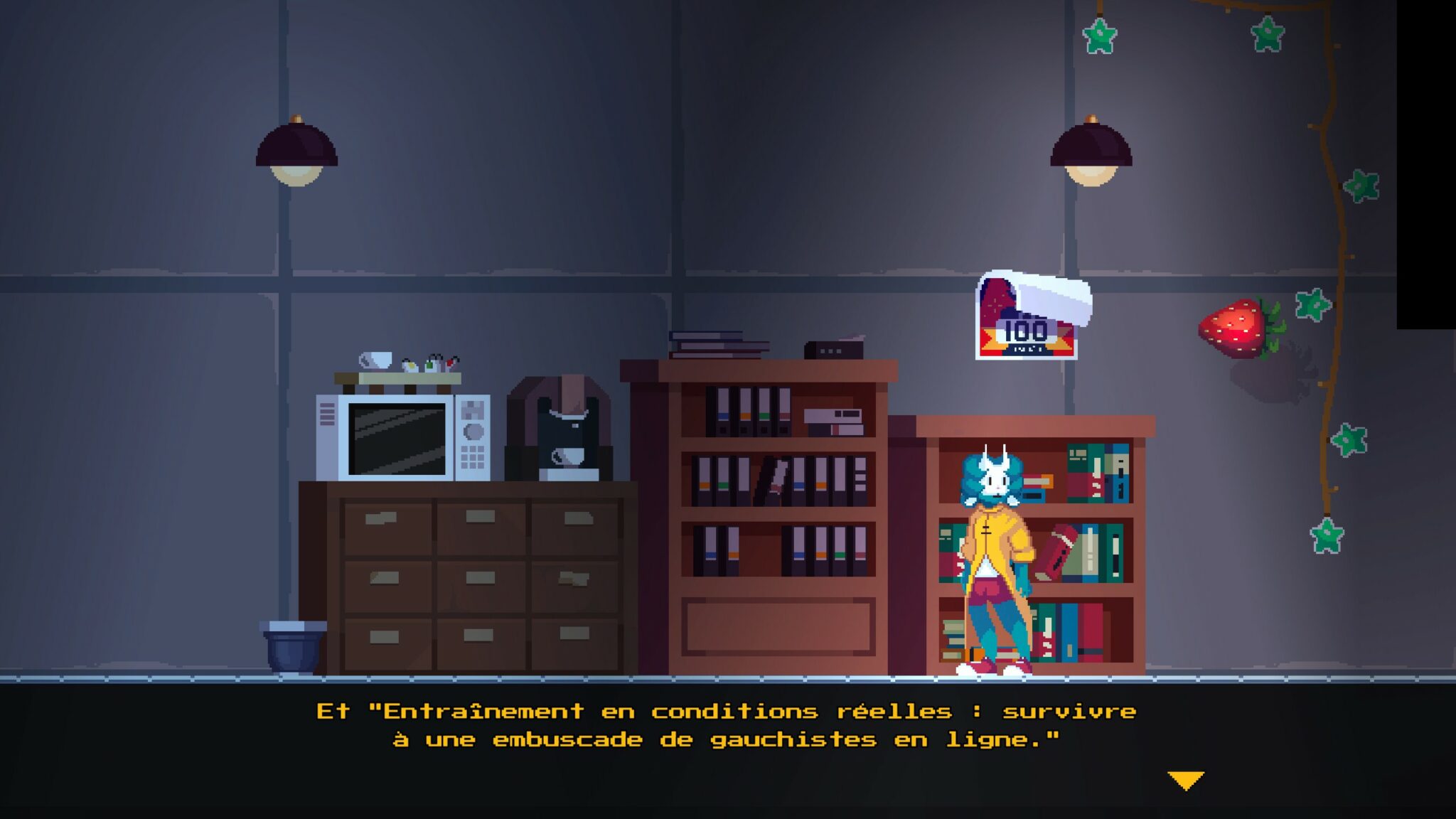 L’ensemble est porté par une galerie de personnages secondaires bien écrits, une tonalité oscillant entre l’absurde et le mélancolique, et un humour qui surprend autant qu’il peut se montrer un peu lourdingue. Le tout donne à la première production de Mostly Games une identité forte, même si l’on sent qu’il n’exploite pas toujours tout son potentiel en matière de métarécit.