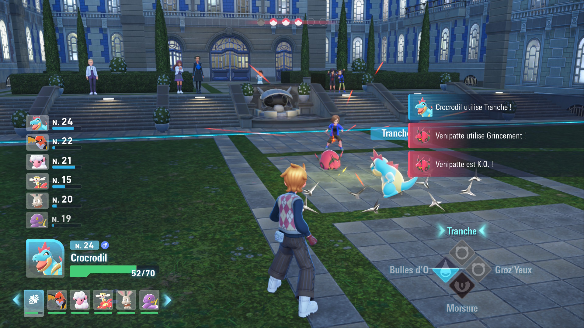 Si Légendes Arceus mettait l’accent sur la capture, Légendes Z-A met le paquet sur les combats. Le système de capture d’Arceus fait son retour, mais il est désormais au service du cœur du jeu : le combat. Et quel combat ! Game Freak a tout changé. Fini le tour par tour, place à l’action pure. Il faut tout réapprendre : se positionner, esquiver, et gérer ses attaques qui ont désormais des cooldowns.