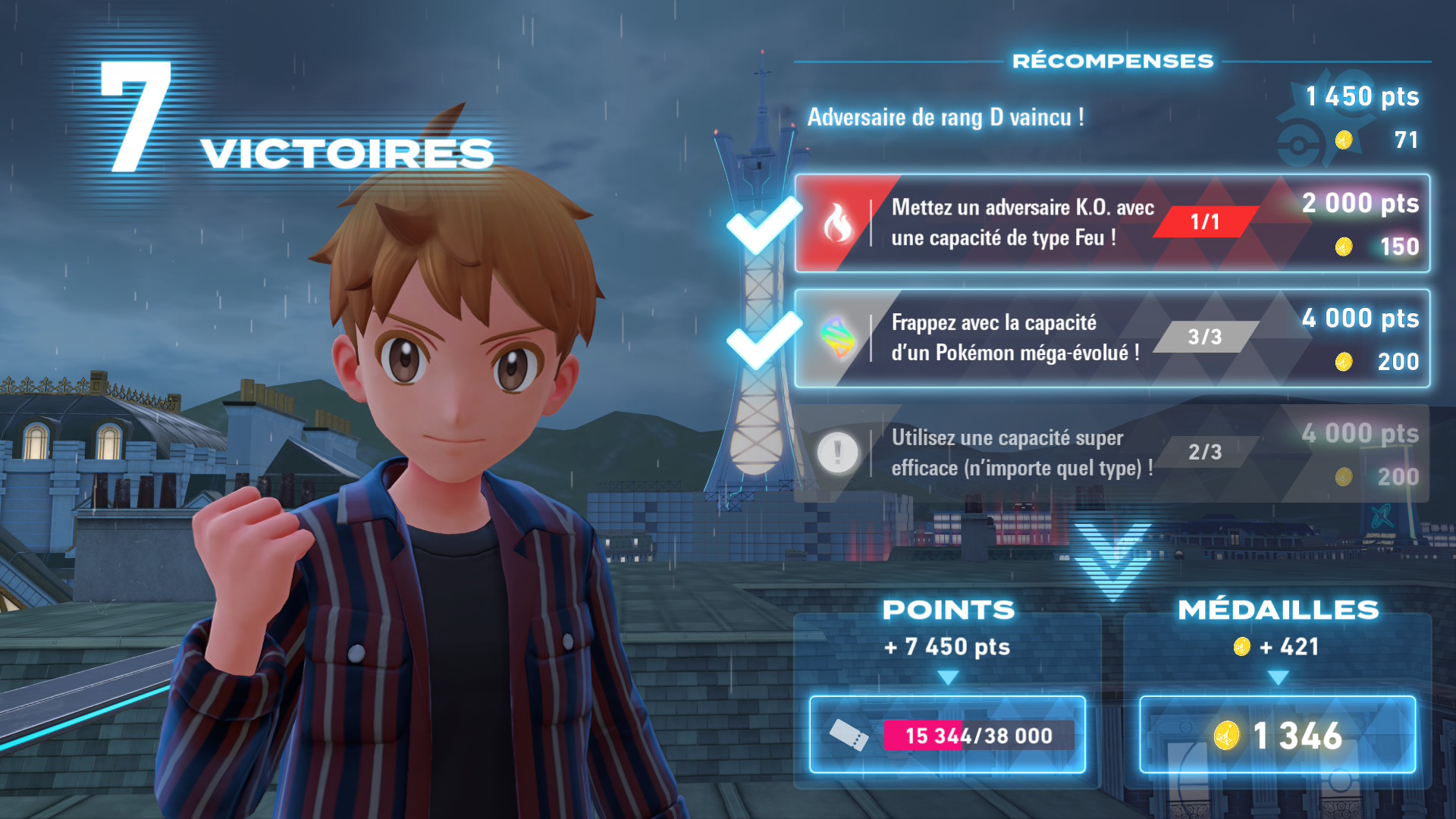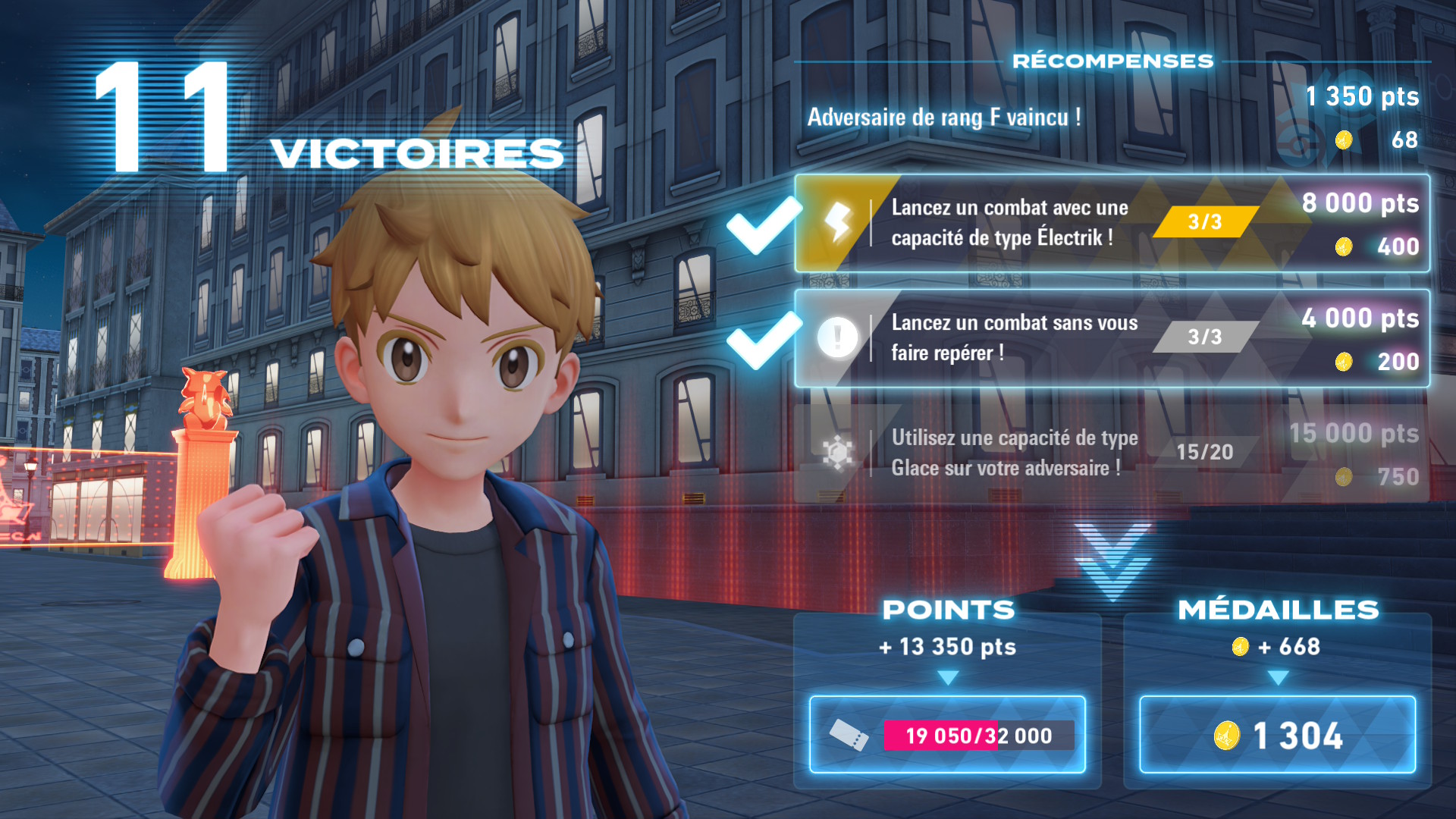 Le jeu vous donnera tout le loisir de « maîtriser » ce système, peut-être même un peu trop. L’histoire principale, centrée sur le tournoi Royale Z-A, vous force à enchaîner les combats. Pour monter en rang, il faut parfois aligner 15-20 victoires d’affilée par nuit. Ces combats nocturnes sont malheureusement d’une facilité déconcertante et virent à la corvée. Heureusement, pour avoir le nombre de points requis rapidement, il est possible de trouver les cartes, vous demandant d’effectuer des actions spécifiques (comme par exemple surprendre dix dresseurs), vous octroyant un bonus de point et réduisant le nombre de combats à effectuer. Ces phases nocturnes restent cependant trop répétitives et ne procurent pas le même plaisir que les combats contre les pokémon barons trouvables dans les zones sauvages et les méga-évolutions Ferox.