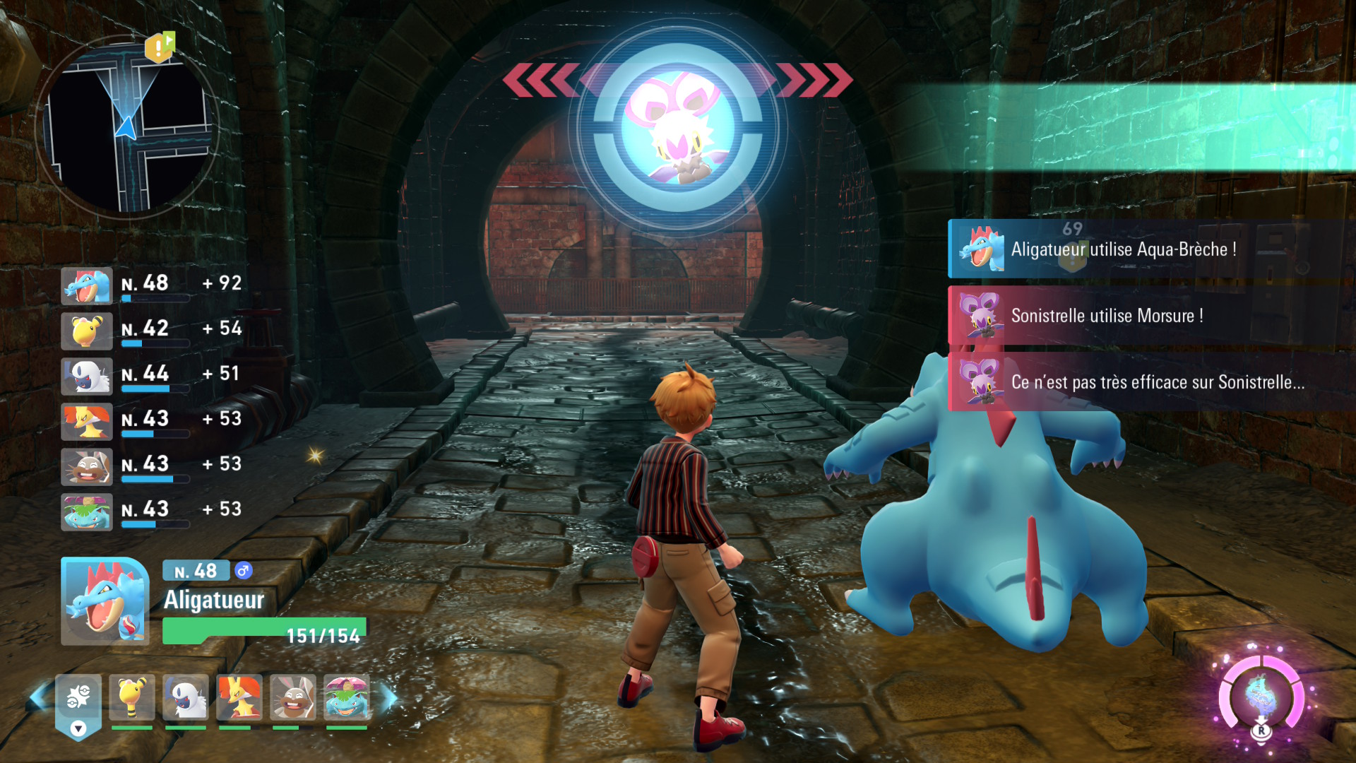 Heureusement, une fois cette épreuve passée, le jeu s’ouvre d’un coup. Et des choses à offrir, Légendes Z-A en regorge ! Entre la complétion du pokédex en capturant les pokémons des zones sauvages, les combats la nuit pour monter de rang dans le Royale Z-A, l’histoire qui se dévoile peu à peu au début avant d’accélérer le rythme après environ 10h de jeu, et les quêtes annexes, certes courtes et fedex, mais assez variées dans leur narration pour être sympathiques à effectuer, Illumis regorge d’activités ! Pour les complétionistes, il faudra même fouiller rues, toits et égouts pour trouver tous les Pokémon !