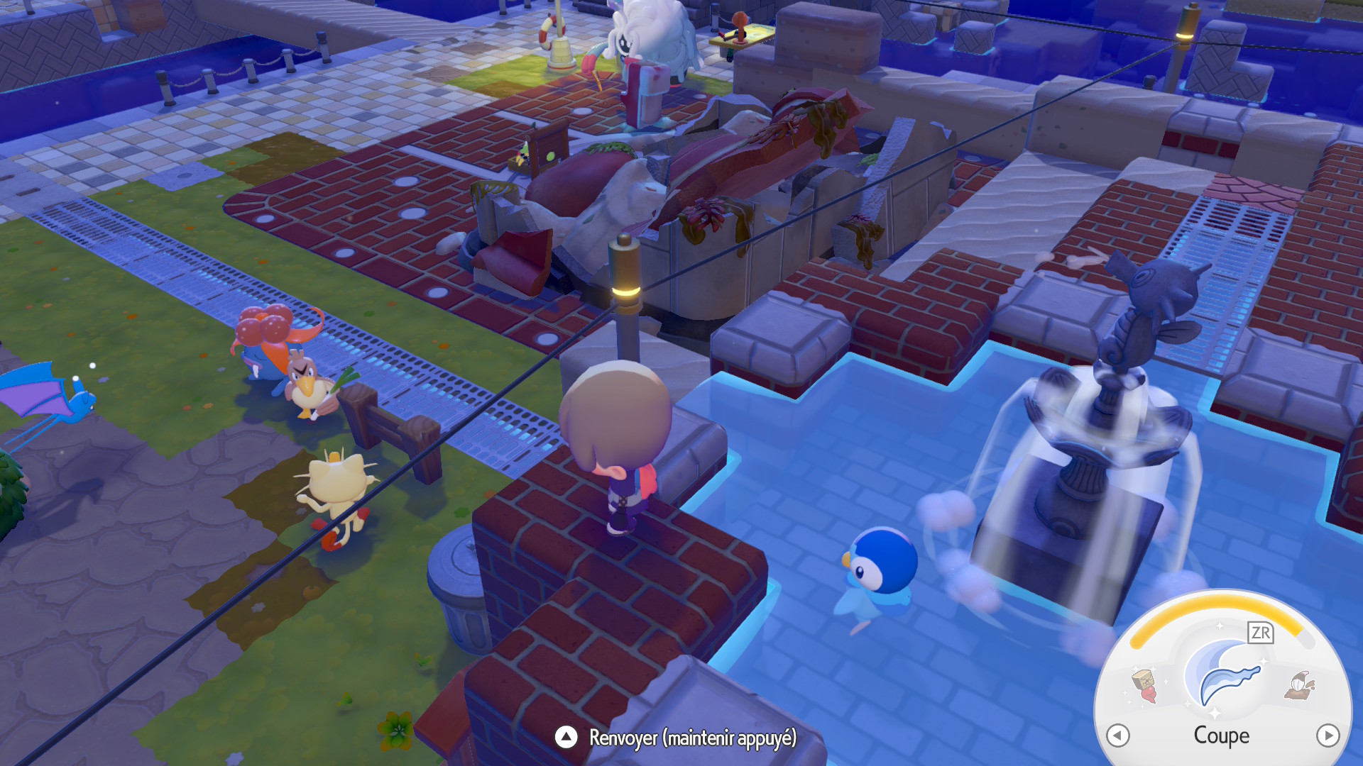 Les quêtes finales, exigeant toutes d’atteindre un certain score d’aménagement, varient intelligemment les plaisirs : humidifier une grotte pour sauver un Onix, réveiller un Ronflex tout en permettant à un Pikachu de refaire de l’électricité, ou rebâtir de zéro le centre commercial de Céladopole. Seule l’idée de reconstruction est commune, mais les étapes pour y arriver seront bien différentes.