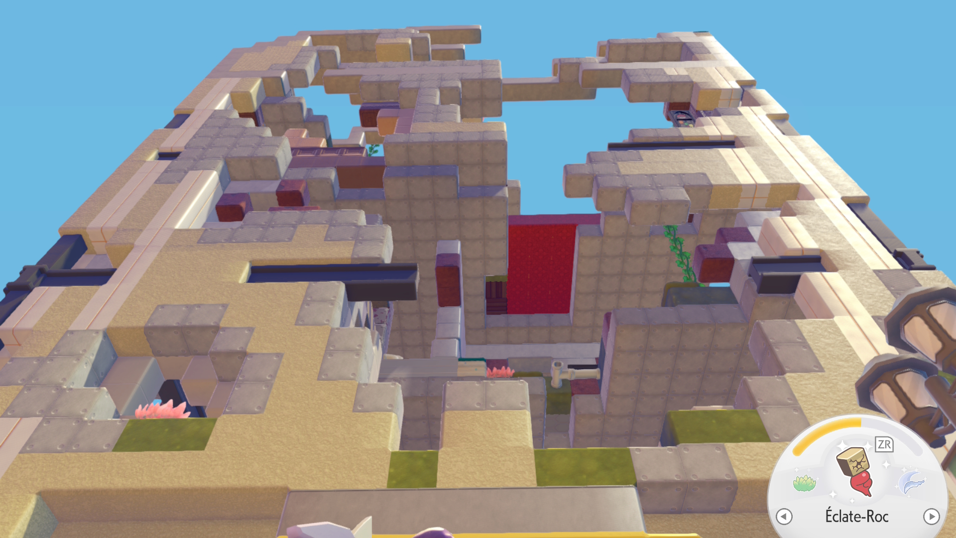 L’aventure débute véritablement avec la rencontre du professeur Bouldeneu et du premier Pokémon revenu sur les lieux : un Carapuce. Dès lors, l’objectif est clair : remodeler les zones pour créer divers habitats, attirer toujours plus de créatures, et débloquer de plus grandes constructions. L’idée est de faire monter le niveau de maîtrise d’une zone (généralement jusqu’au niveau 3) avant de valider une grosse quête finale qui ouvrira des portes métalliques permettant d’aller vers la carte suivante.