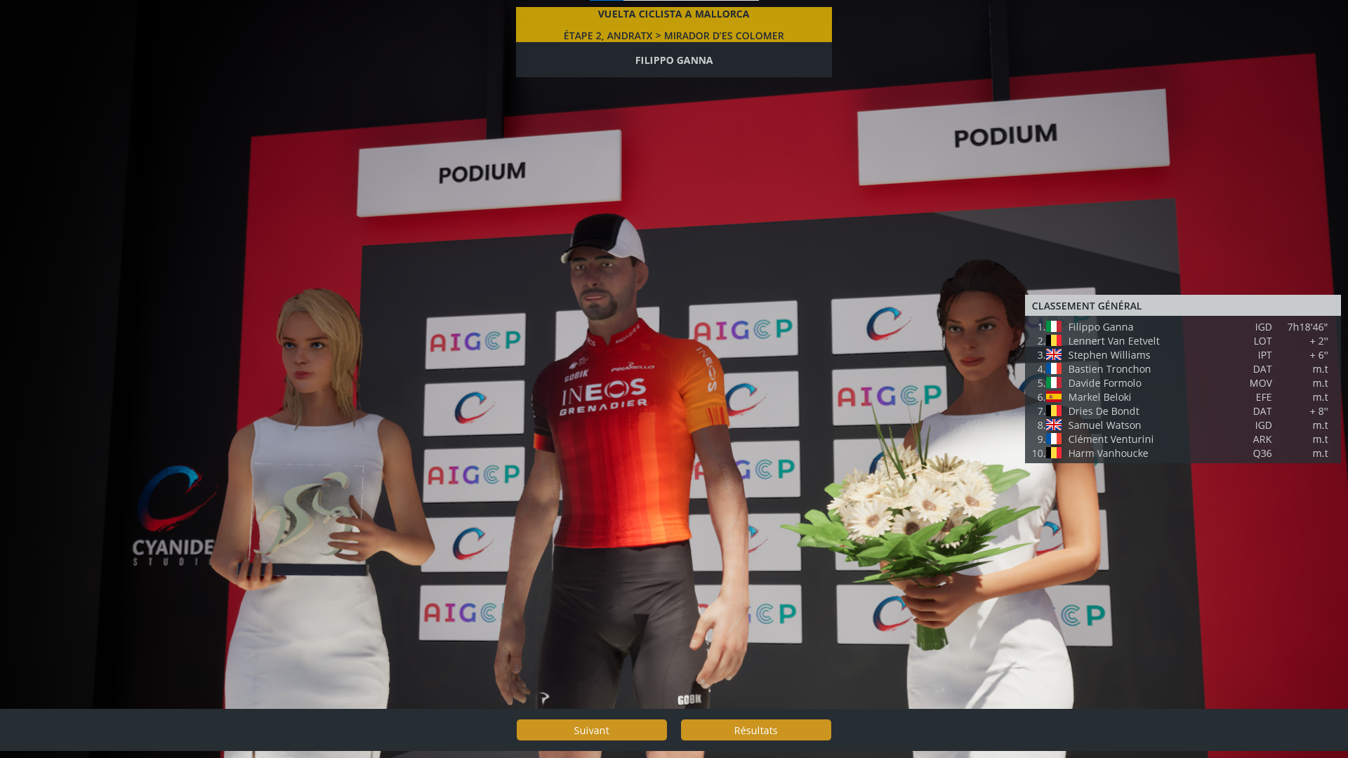 Grâce à ces sliders, l’expérience de jeu gagne donc en réalisme pour ceux qui le souhaitent, mais peut également être simplifiée pour les débutants qui souhaiteraient lisser le niveau général du peloton pour se donner une chance de jouer la gagne. Sur ce point, notons également que le jeu nous a paru simple en niveau normal (mais nous faisons partie de la caste des initiés) et nous conseillerons aux habitués de débuter en mode difficile, en adaptant les sliders à leur guise.