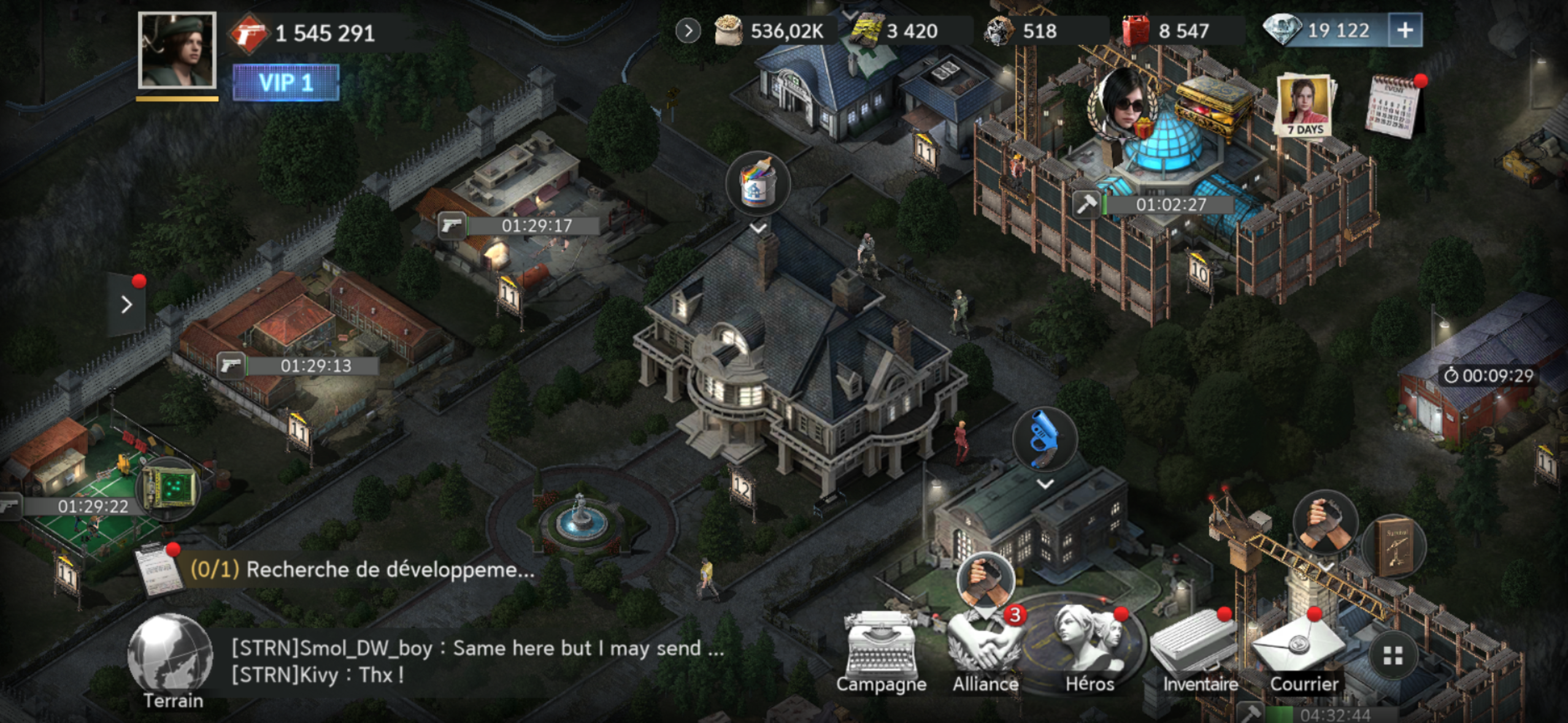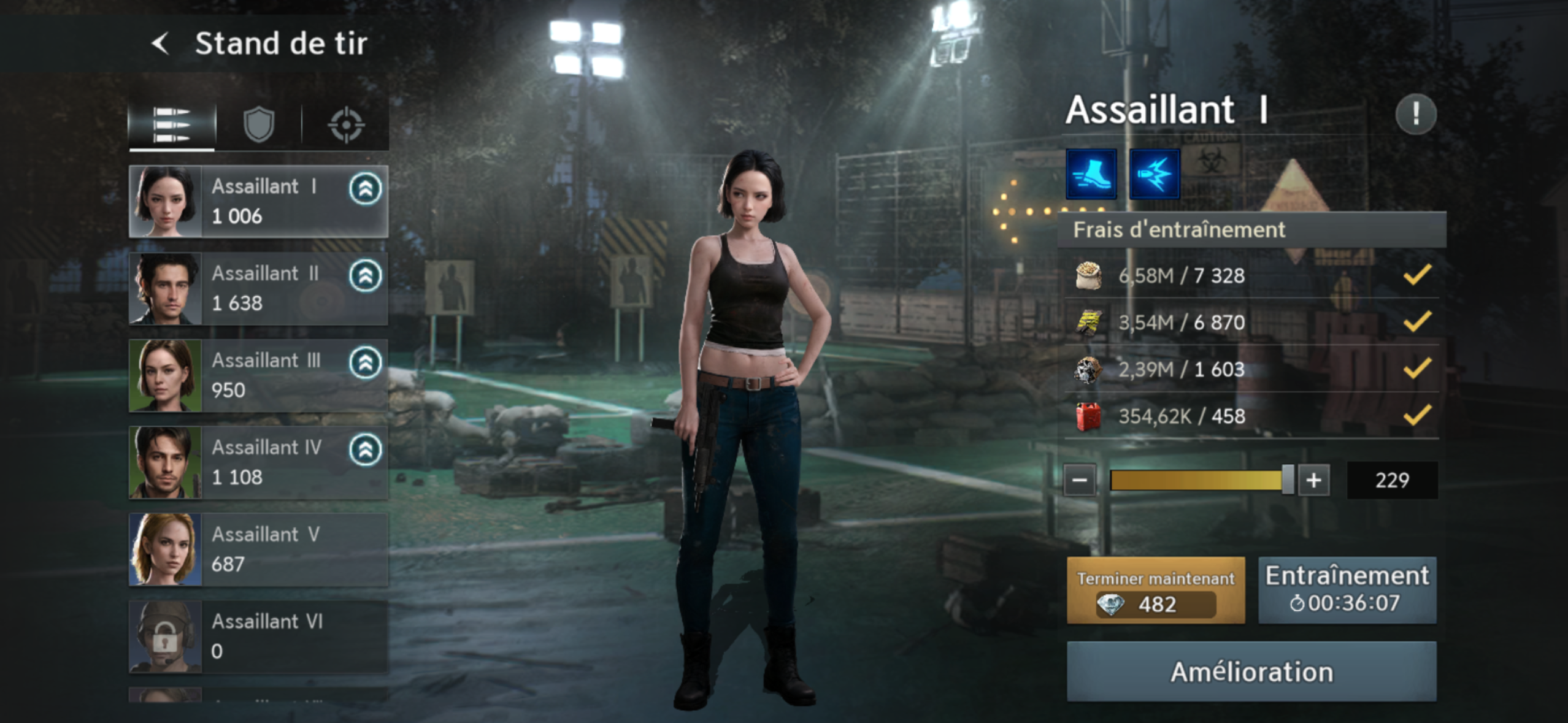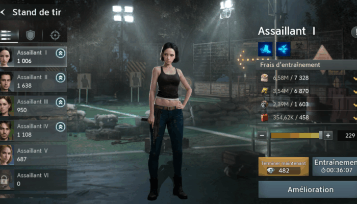 Côté héros, vous pouvez constituer une équipe de trois personnages grâce à un système de tirage aléatoire. Aucun personnage légendaire n’est disponible gratuitement, un seul peut être obtenu via les tirages payants. Les autres légendaires sont accessibles uniquement via la boutique : Léon demande un niveau VIP élevé, une sorte d’abonnement qui demande beaucoup d’investissement, Jill nécessite l’achat d’un pack spécifique, et Ada réclame un certain montant dépensé dans la boutique. Tout est articulé autour de la boutique et fait pour que le joueur dépense un peu partout s’il veut se procurer ses personnages favoris.