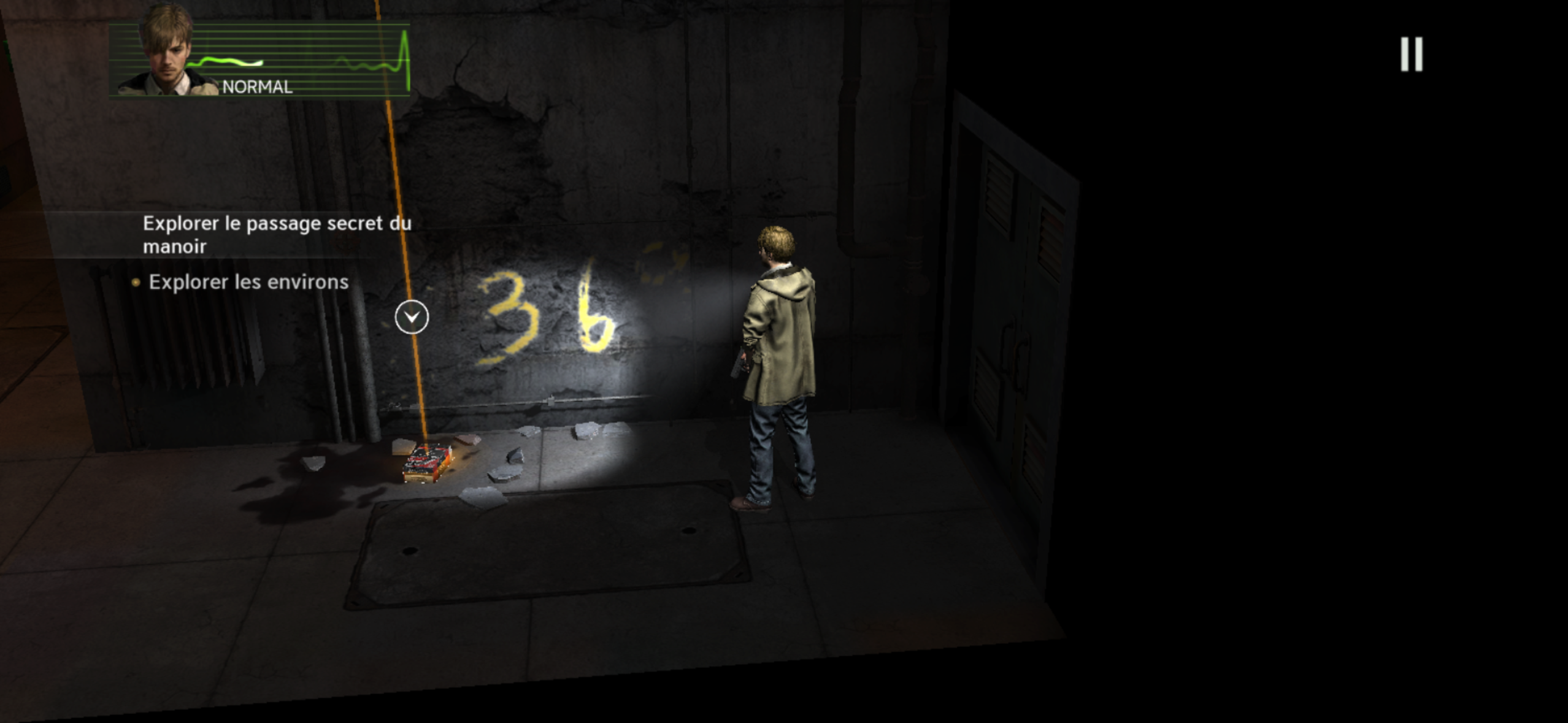 Au lancement, le jeu ressemble à un Resident Evil version mobile. On se réveille dans un hôpital, la caméra reprend l’angle des premiers épisodes, et l’exploration se fait librement. Pour les fans, c’est un plaisir : de nombreuses références aux anciens opus sont parsemées dans les environnements, et l’exploration initiale fonctionne. Le premier zombie apparaît rapidement, clin d’œil aux habitués de la série. L’exploration continue, ponctuée d’énigmes simples et de repères visuels jaunes pour guider le joueur. Même si le tout est un peu poussif, c’est agréable, mais à mesure que l’on progresse, on est invité à se réfugier dans un « manoir ». C’est là que le vrai jeu commence, et que le fun s’arrête.