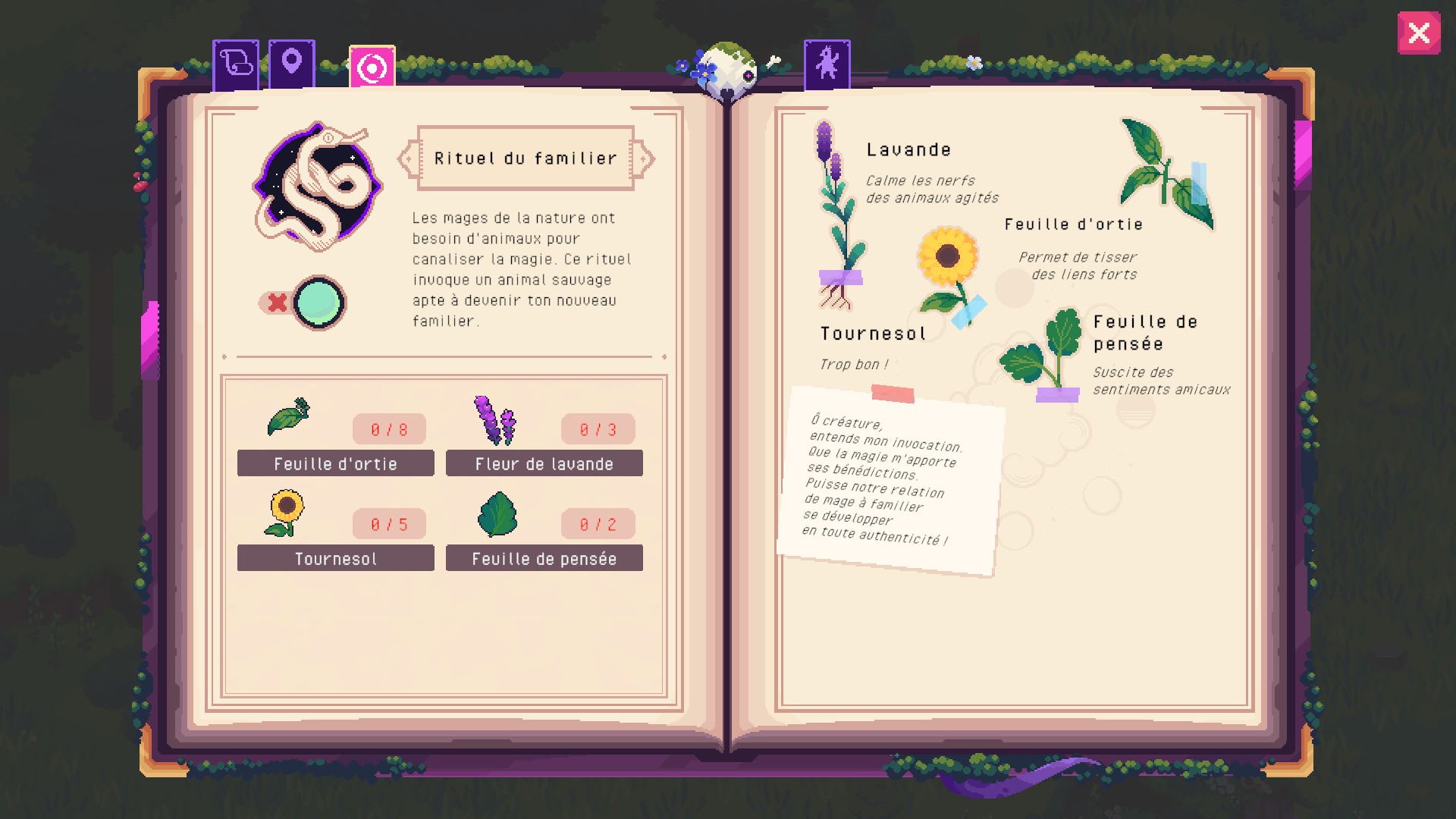 En tant que mage de la nature, notre rôle est de cultiver des plantes, de les récolter et de les utiliser pour pratiquer des rituels grâce à notre livre des ombres. C’est cet aspect du gameplay qui occupera l’autre partie de notre temps sur Ritual of Raven, et qui fera avancer le scénario. Première originalité de ce jeu par rapport aux simulations de ferme classiques : ici, pas de saisons ou de course contre la montre pour bien optimiser ses cultures. Ce sont les phases de la lune qui auront une influence (ou pas) sur la croissance de certaines plantes et détermineront leurs propriétés lors de la floraison.