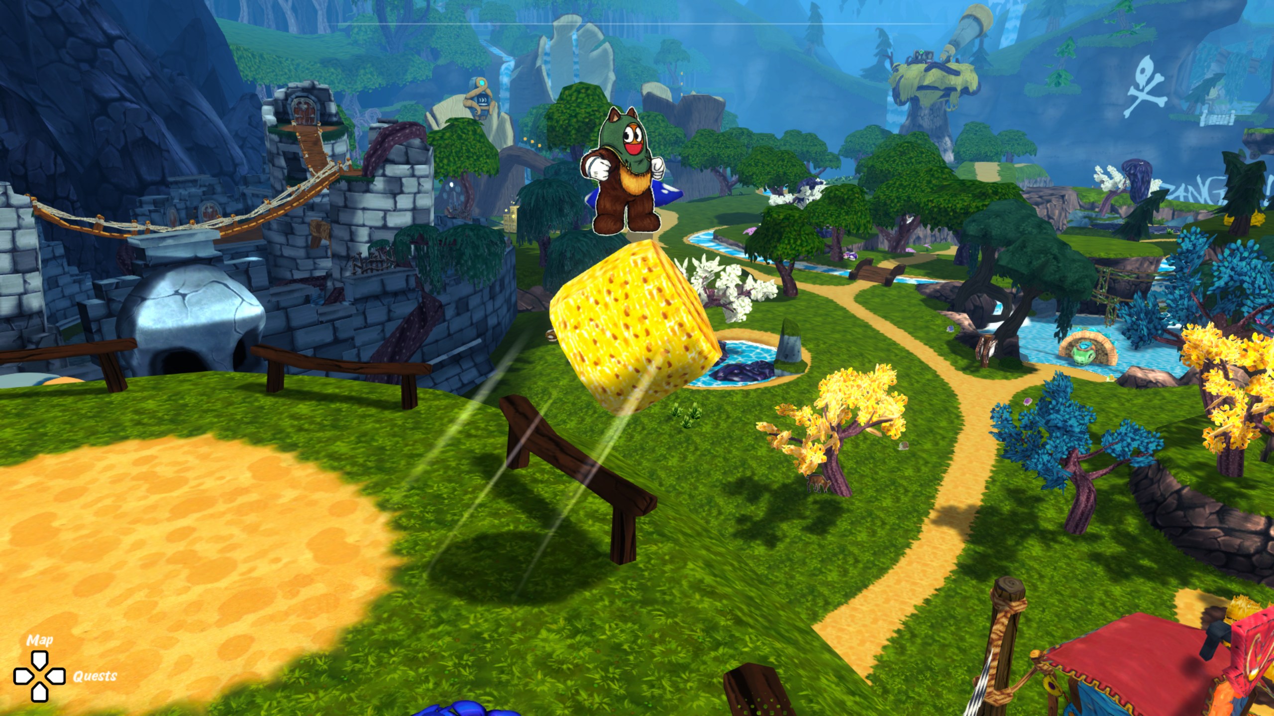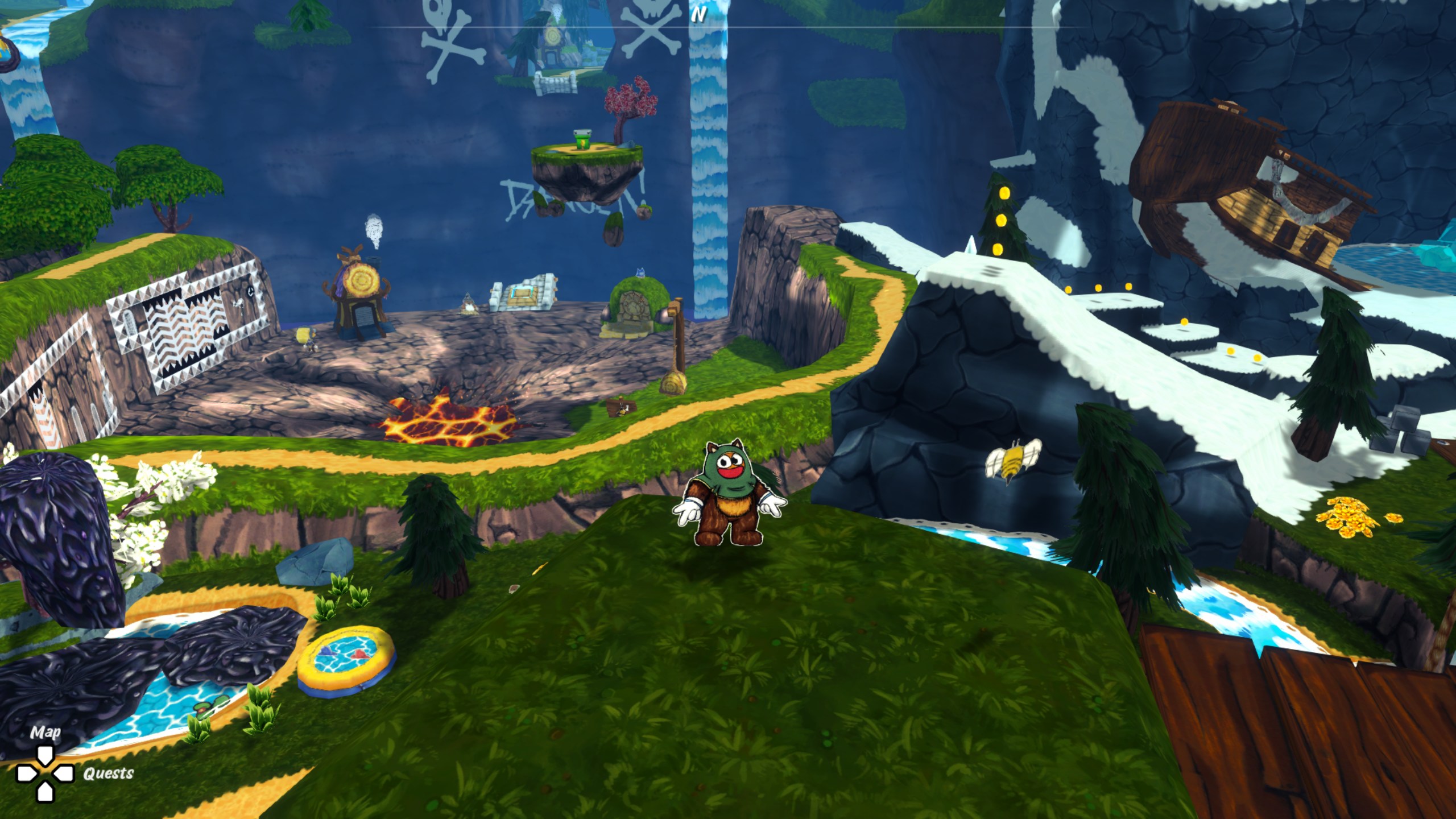 En effet, les « mondes » s’apparentent davantage à de petits îlots parcourus linéairement, un peu comme des niveaux de Crash Bandicoot. C’est un choix étrange, d’autant plus que ces mêmes mondes sont débloqués séquentiellement, ne laissant aucune liberté au joueur quant à la progression.
