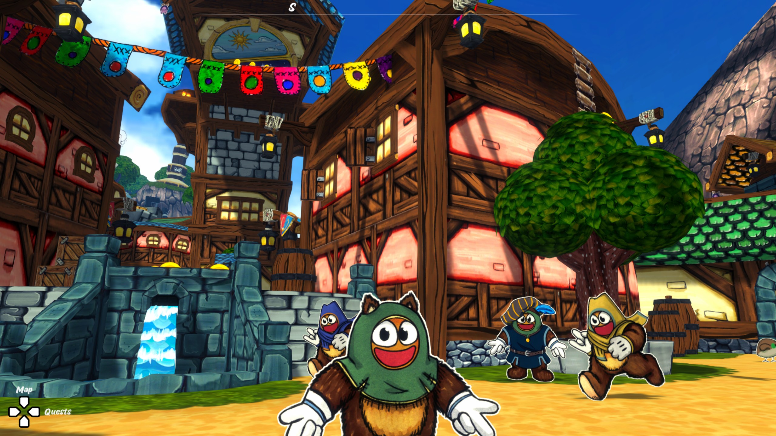 Avec sa direction artistique colorée, Ruffy and the Riverside nous procure immédiatement un sentiment de nostalgie. Les personnages, des sprites 2D dessinés à la main, contrastent avec le monde en 3D, évoquant une époque fantasmée des collectathons d’autrefois. Le résultat est beau, varié et surtout agréable à regarder.