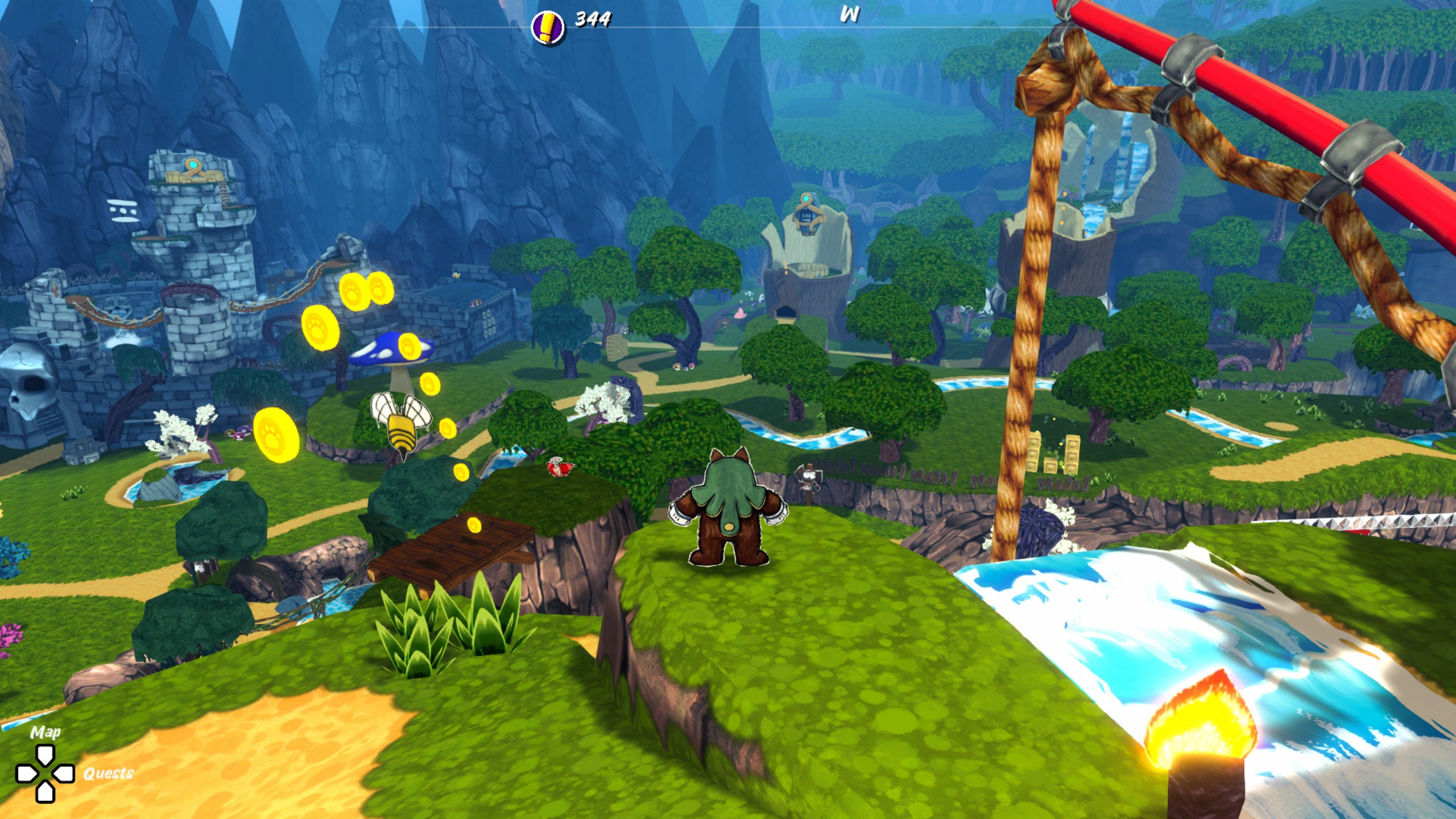 Dans un collectathon, on s’attend à devoir récupérer plusieurs itérations d’un même objet pour débloquer la suite, généralement dans un environnement ouvert qui contient plus de ces objets qu’il n’en faut pour progresser, afin de laisser le joueur choisir ses défis. Ruffy and the Riverside prend une direction tout à fait différente, ne laissant ouvert que le contenu annexe.
