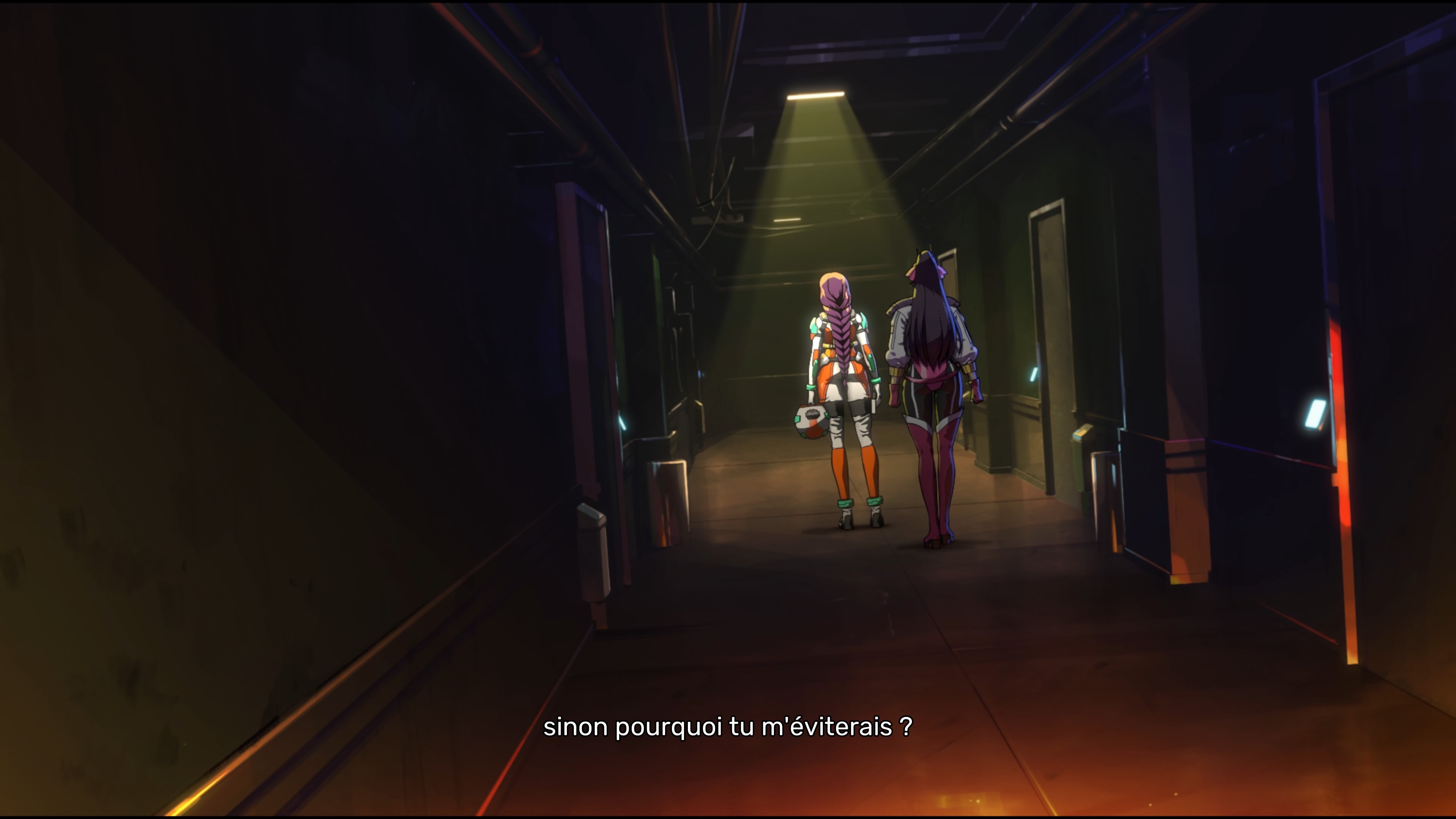 D’emblée, Screamer frappe par son esthétique : il a été façonné de manière à satisfaire tout un pan de joueurs adeptes des animes des années 90, voire au-delà. Mais, quoi qu’il en est de ce potentiel public cible, le jeu possède bel et bien une force dans son visuel digne de chatouiller l’œil de tout un chacun. Surtout quand il s’agit des cinématiques.