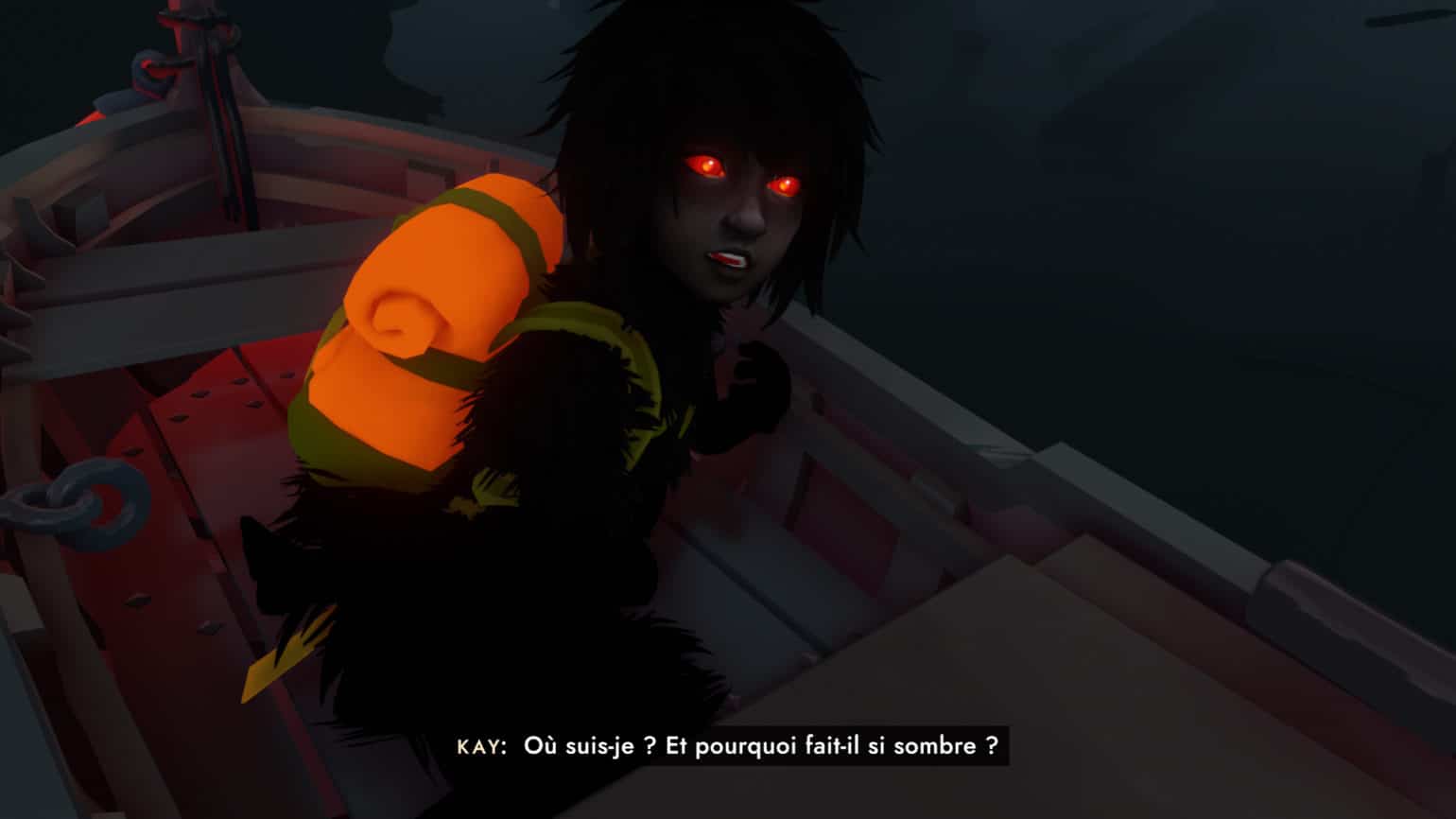 Et c’est un des problèmes du jeu (et pas le seul, hélas). Cet aspect « aventure intérieure », cet univers comme une métaphore de la psychologie du personnage principal, ça fait un moment qu’on le rencontre dans le jeu vidéo. Pour citer trois ou quatre titres récents qui jouent de cela, on pourrait évoquer Gris, donc, Path To Mnemosyne, ou, plus grand public, Hellblade – Senua’s Sacrifice, et bien entendu Celeste. C’est d’ailleurs avec ce dernier que la comparaison est la plus évidente, même si les gameplay des deux titres sont à des kilomètres l’un de l’autre : quand Celeste doit gravir une montagne, Kay doit traverser un océan. On a saisi l’idée… Dommage, c’était le point central du jeu.