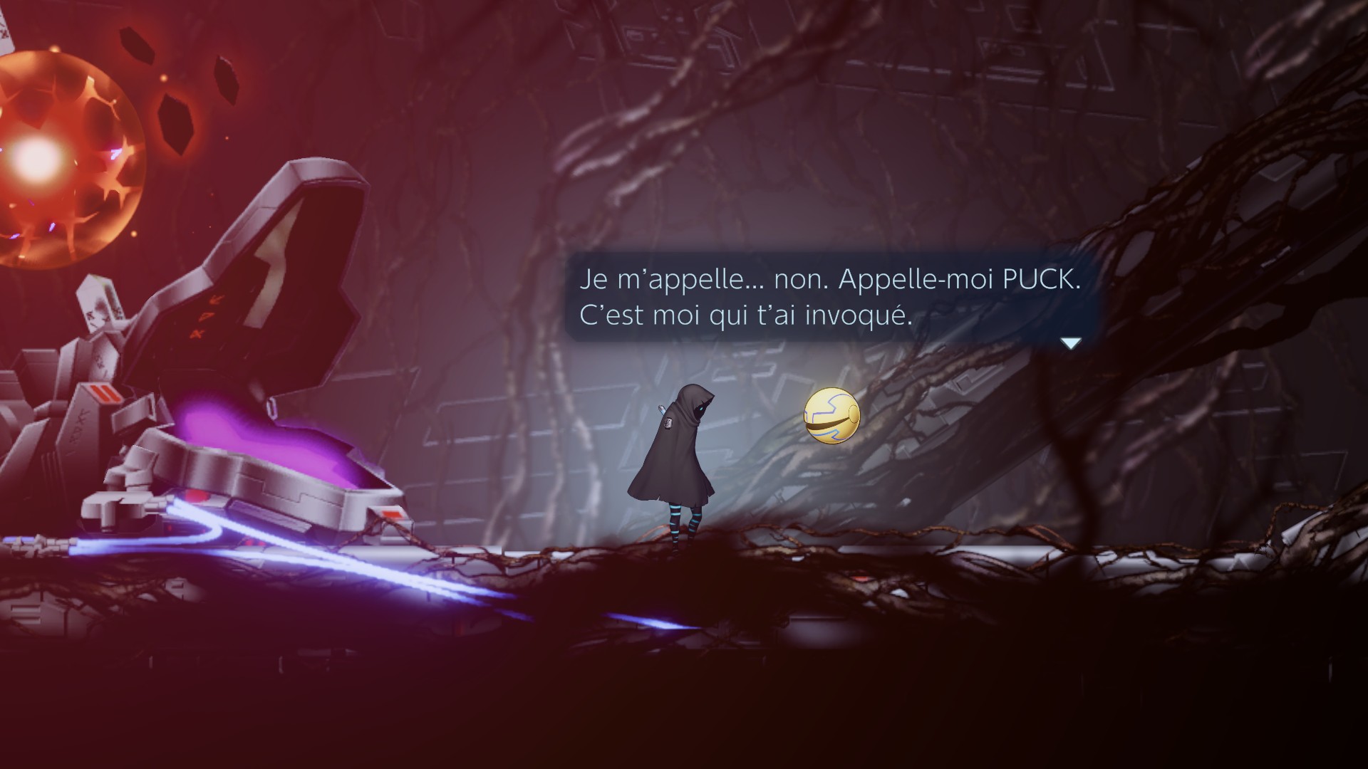Comme dans Shadow Labyrinth, dans lequel le Pac-Man, reprenant sont nom original de Puck (vous connaissez probablement l’histoire des bornes Puckman ou le Puck a été changé en Pac pour l’export, de peur que des petits malins ne transforment dans les salles d’arcade le « P » en « F »…), ne fait pas que nous accompagner, mais habite littéralement le personnage principal. En effet, certaines zones possèdent des sortes de rails qui, une fois activés, font fusionner l’épéiste et la sphère en une créature qui circulera sur les rails à la manière de ce bon vieux Pac-Man des années 80.