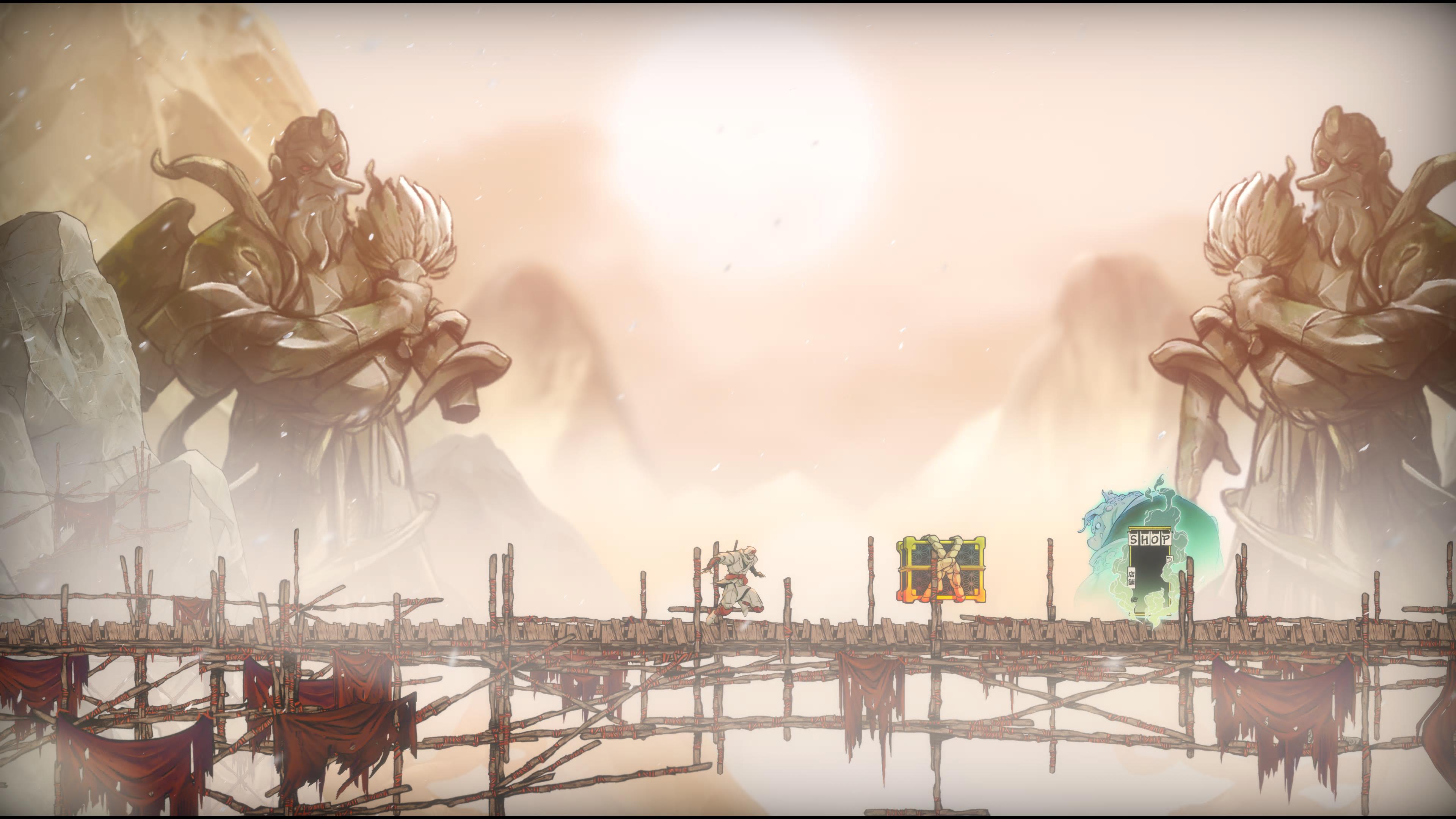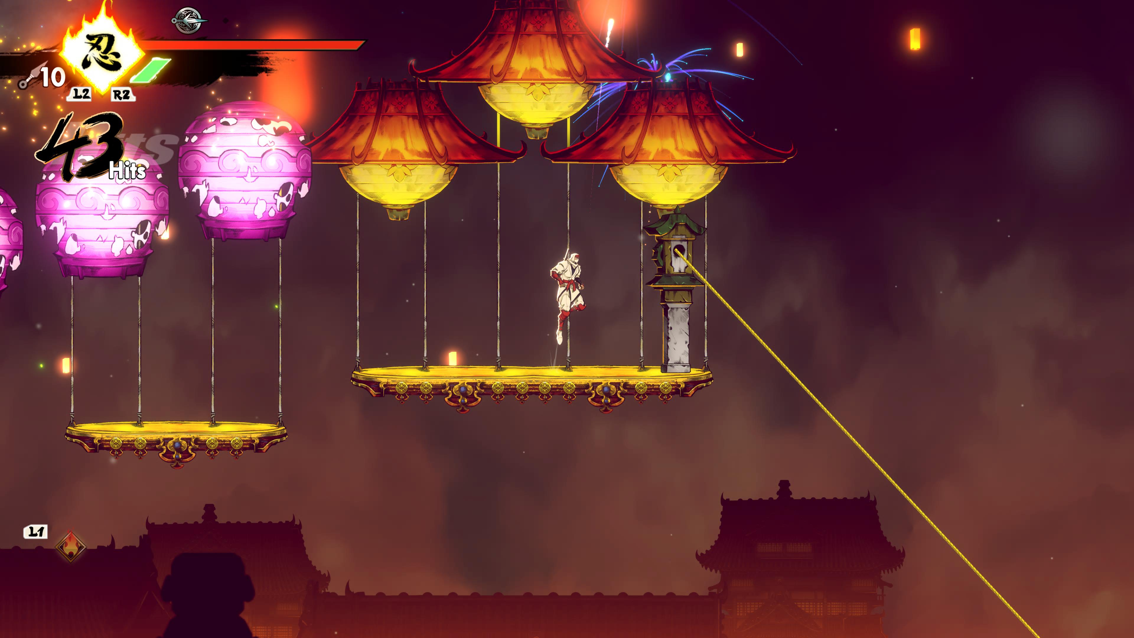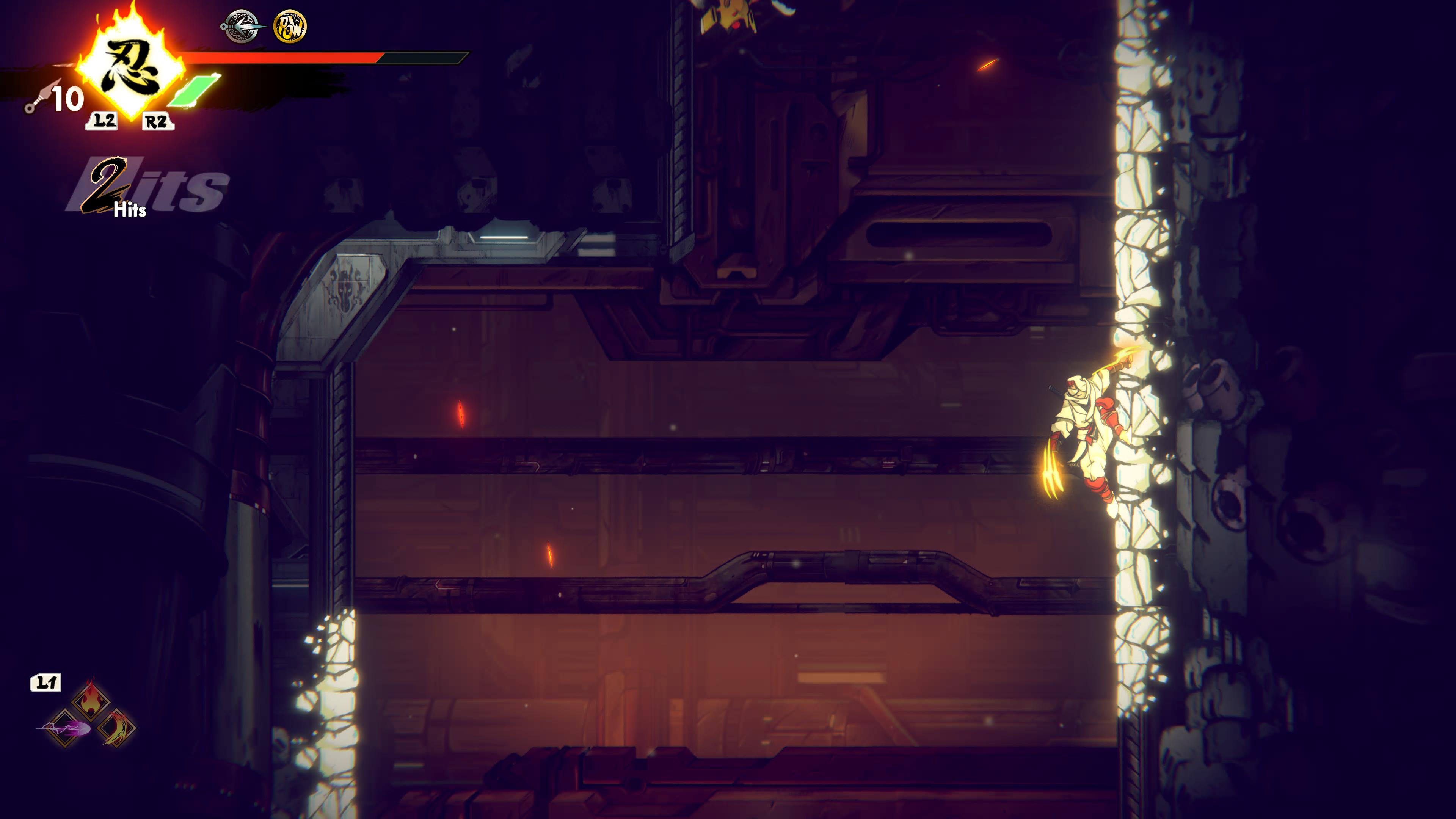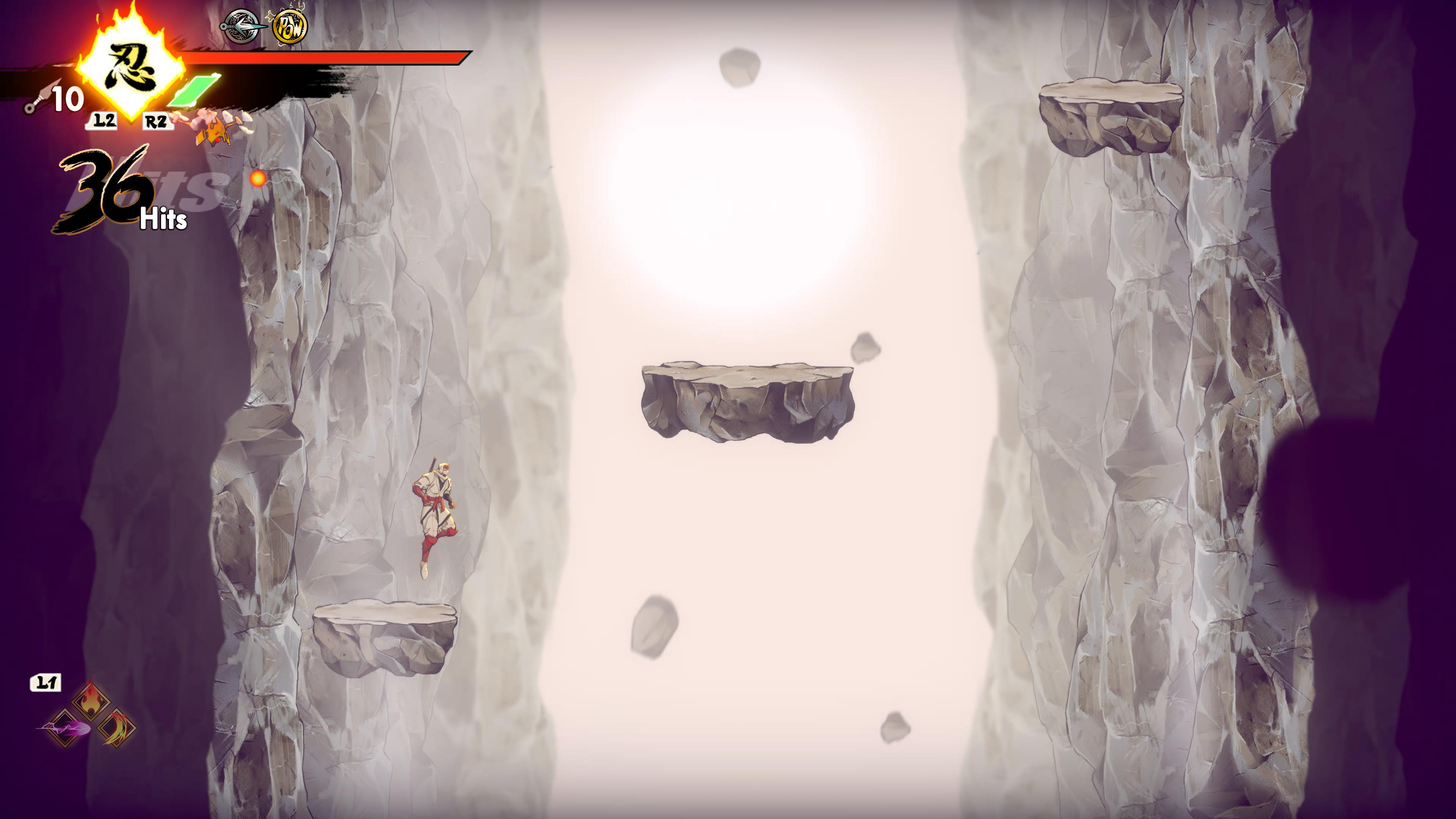 Il y a le côté technique, bien sûr, qui nous donne envie d’y retourner constamment, avec toutes ces splendides animations et ses effets visuels à chaque coup de katana ou de kunai, mais c’est surtout la fluidité des enchaînements, à la fois simples et techniques à sortir, l’impact ressenti à chaque coup porté et le design sonore de l’ensemble qui rendent l’ensemble incroyablement harmonieux. Les attaques se font simples dans les premiers niveaux, mais rapidement, grâce à un marchand local, on débloque de nombreuses techniques supplémentaires venant étoffer notre arsenal.