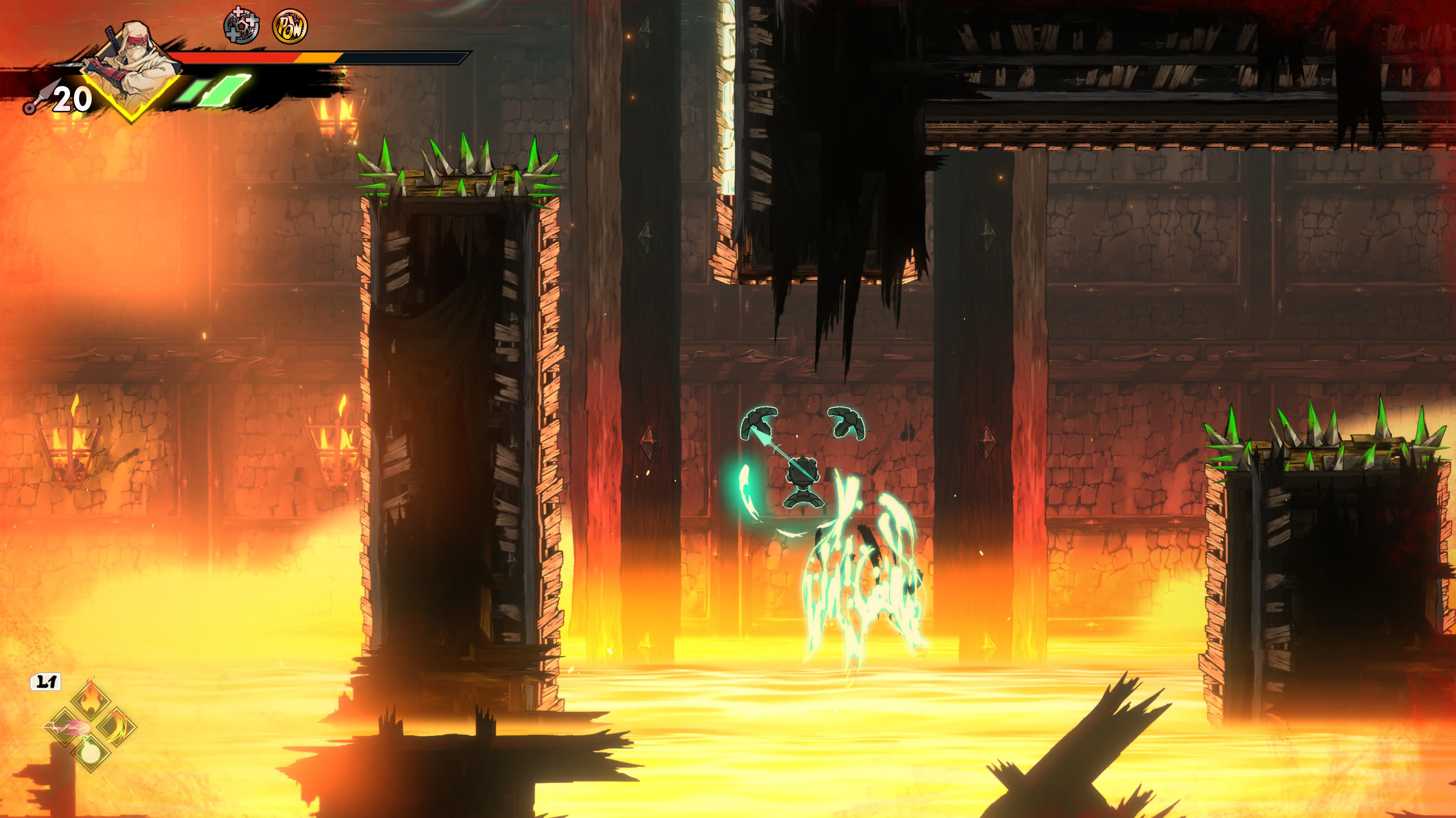 Mieux encore, et pour aussi illustrer la richesse du titre qui a de base la forme d’un simple beat’em up, dont l’unique objectif est de parvenir à la fin du niveau, chaque stage se présente presque comme un mini-Metroidvania. Dans chaque chapitre, divers bonus tels que les médailles d’ouroboros (servant à débloquer de nouvelles techniques à acheter au marchand) ou les coffres secrets renfermant diverses améliorations peuvent être inaccessibles lors du premier passage et nécessiter l’acquisition d’une technique spéciale.