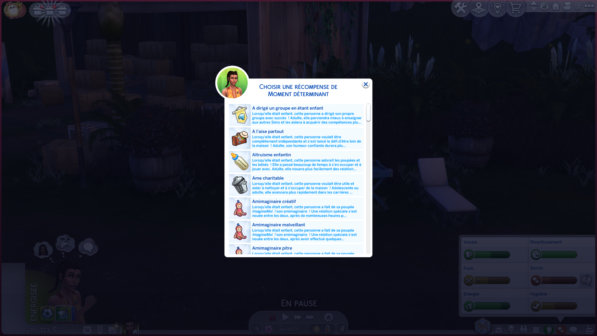 L’idée est charmante, et s’inscrit dans l’histoire des Sims (tous les opus ont bénéficié d’un protagoniste similaire), mais est loin de révolutionner la formule. En revanche, les moments déterminants, ces souvenirs qui influencent la personnalité à l’âge adulte, apportent une vraie richesse narrative et s’intègrent joliment à l’évolution des Sims.