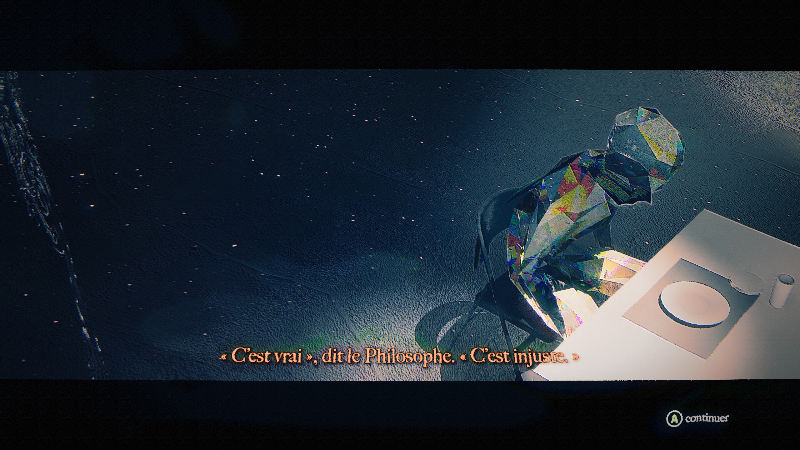Certains pourraient voir dans la narration quelque chose d’abscons, voire d’absurde, ce qui relèverait pourtant d’une lecture bien réductrice. Le jeu n’est ni vide de sens ni gratuit dans ses intentions : il choisit simplement une autre manière de raconter. Par fragments, par sensations, par dialogues sibyllins, parfois drôles, souvent empreints d’une profonde mélancolie. Par des personnages improbables qui, derrière leur étrangeté et leurs névroses, disent quelque chose de profondément humain.