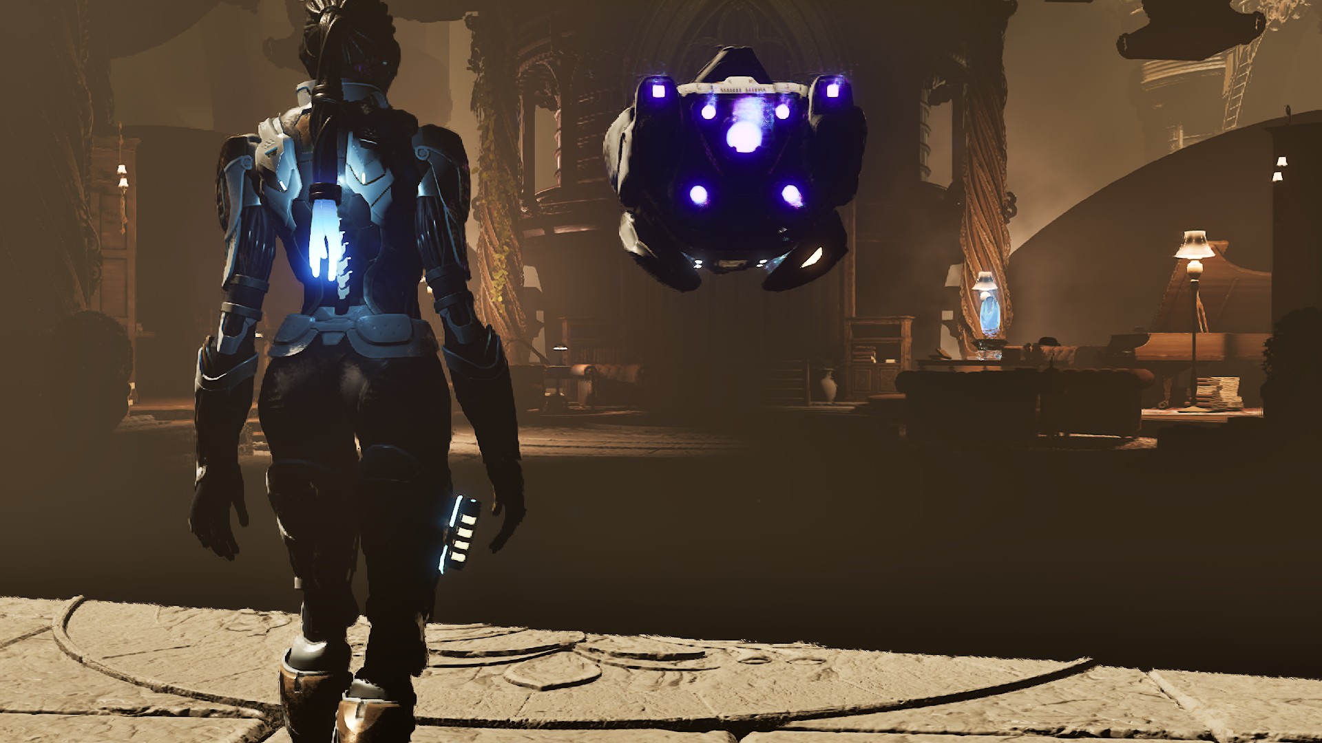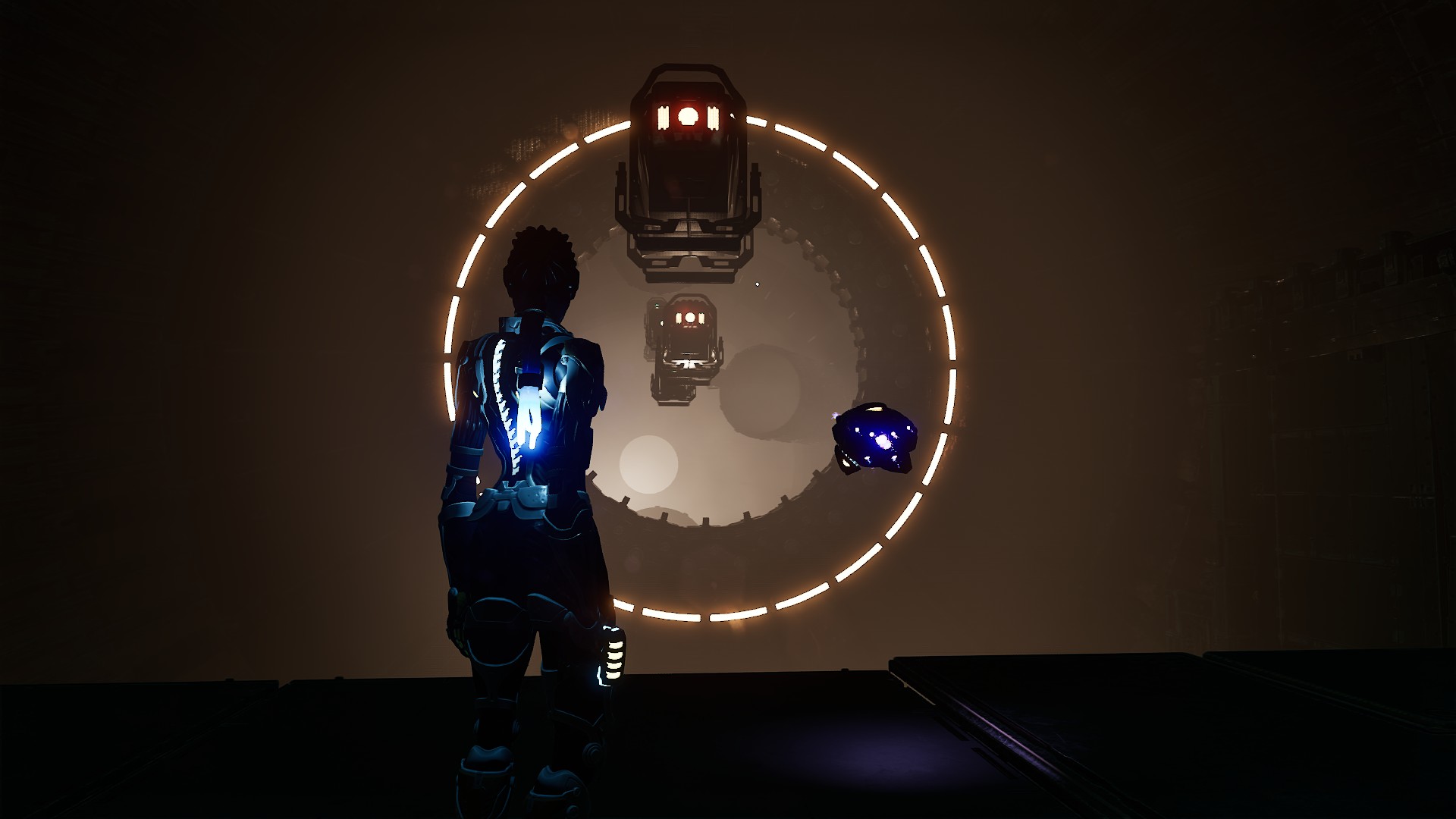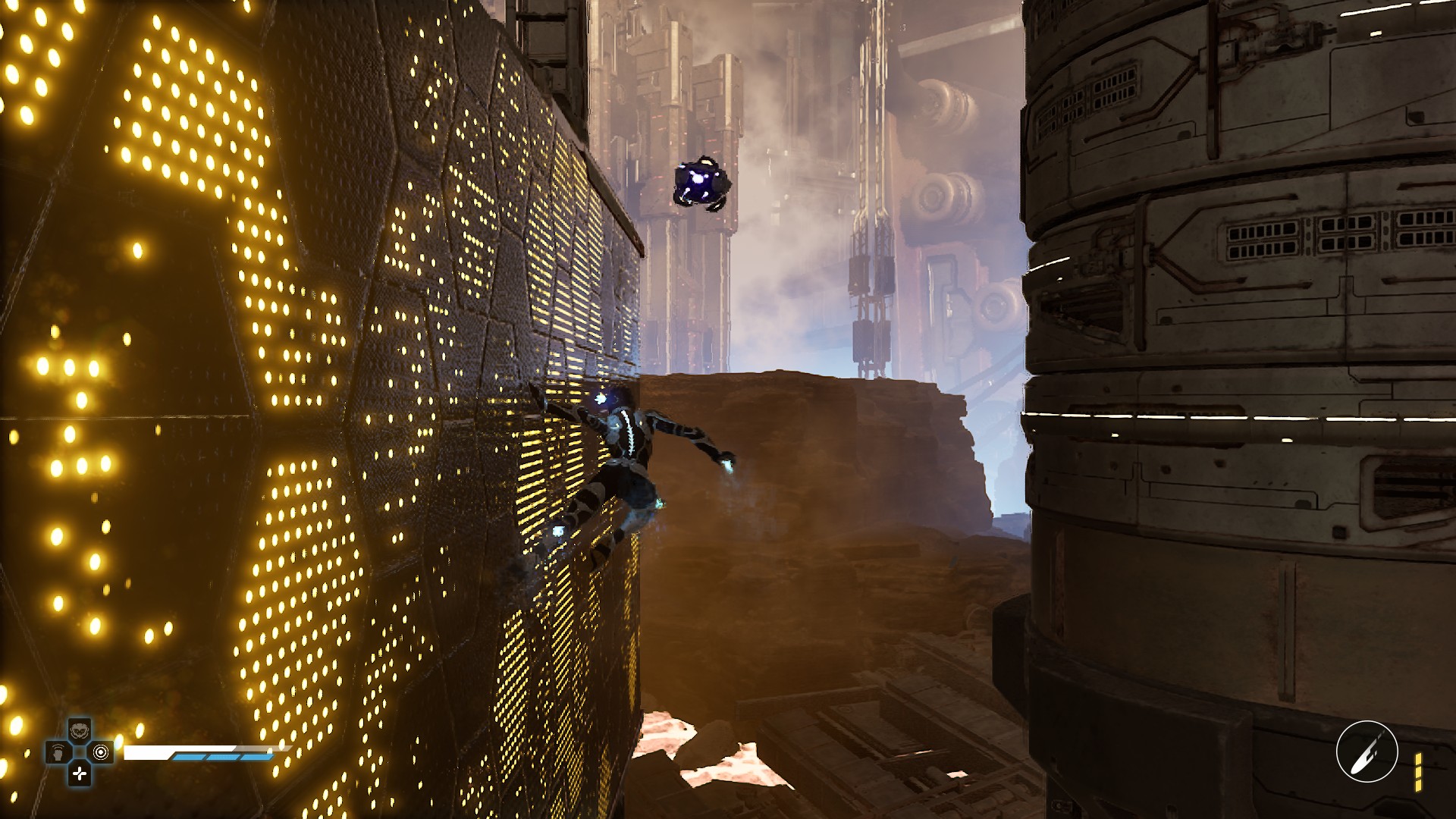 Entre deux phases de plateforme, on trouvera l’autre mécanique centrale du jeu : des arènes surveillées par des androïdes hostiles. Le titre bascule alors vers le jeu d’infiltration à la Batman Arkham Asylum, avec un ensemble d’éléments de gameplay souvent, là encore, déjà vus, mais néanmoins rondement exécutés. Le nombre d’outils dont dispose Zoe (et qui augmente avec le temps) permet de mettre en place différentes stratégies, et chacun pourra aborder ces arènes de la façon qui lui correspond le mieux (même si la version « bourrin » est généralement un peu suicidaire).