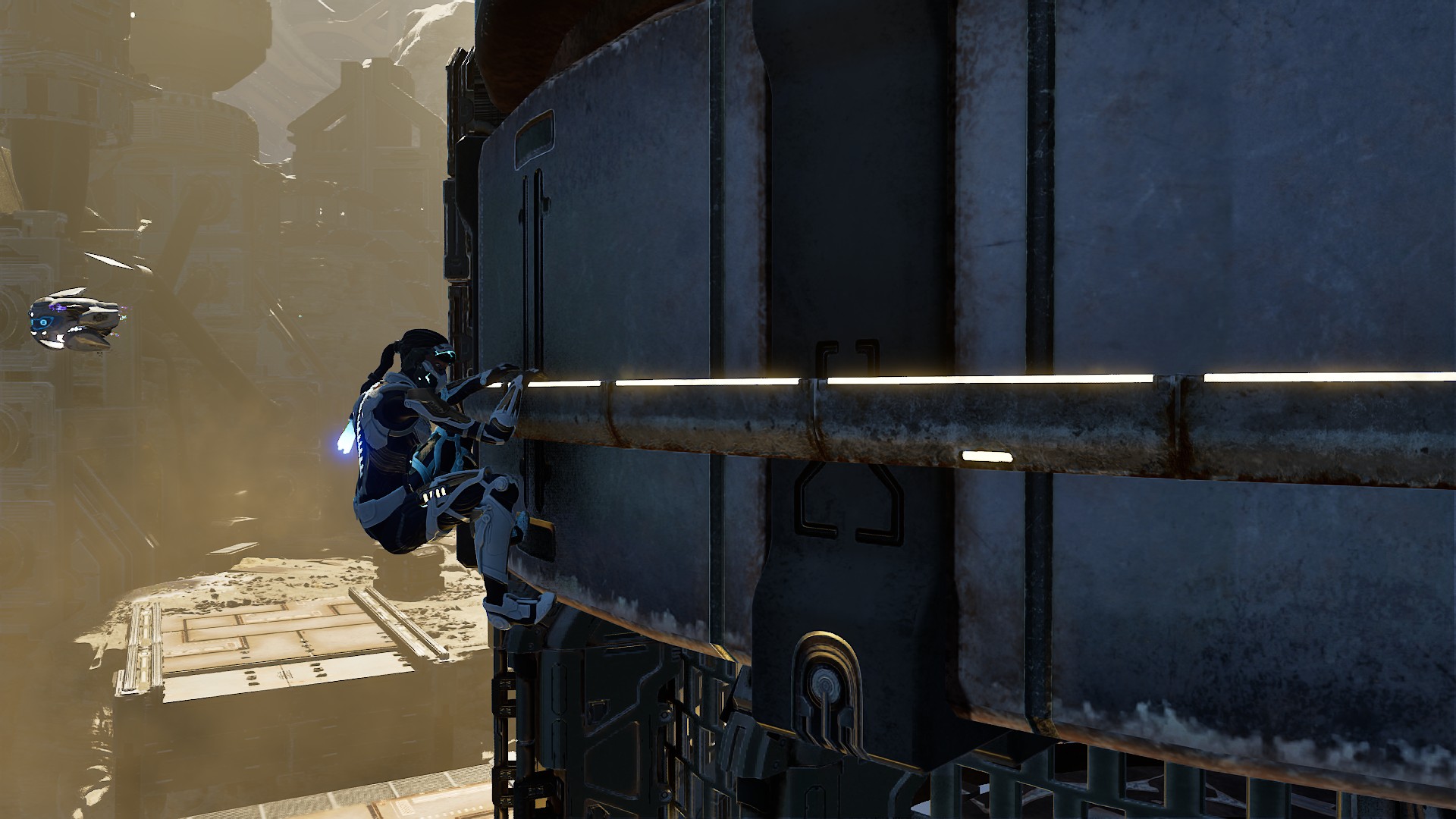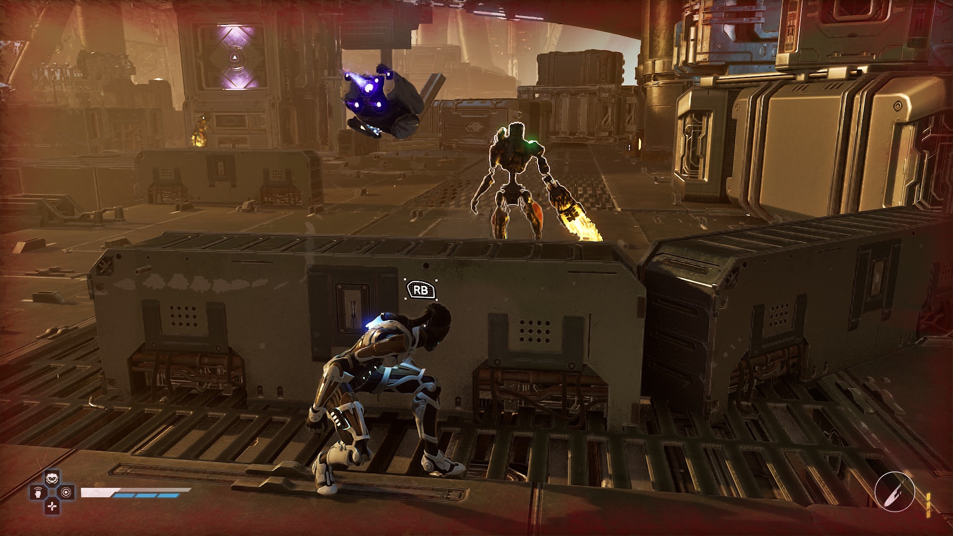 La petite originalité du titre s’appelle Koby (comme le bipeur du début des années 90, concurrent du Tam-Tam). Il s’agit d’un petit drone qui nous accompagne et dont on peut prendre le contrôle façon « fpv » afin de survoler les arènes, marquer les ennemis, et piéger les zones, les outils de Zoe étant utilisables aussi bien par l’héroïne que par son compagnon volant.
