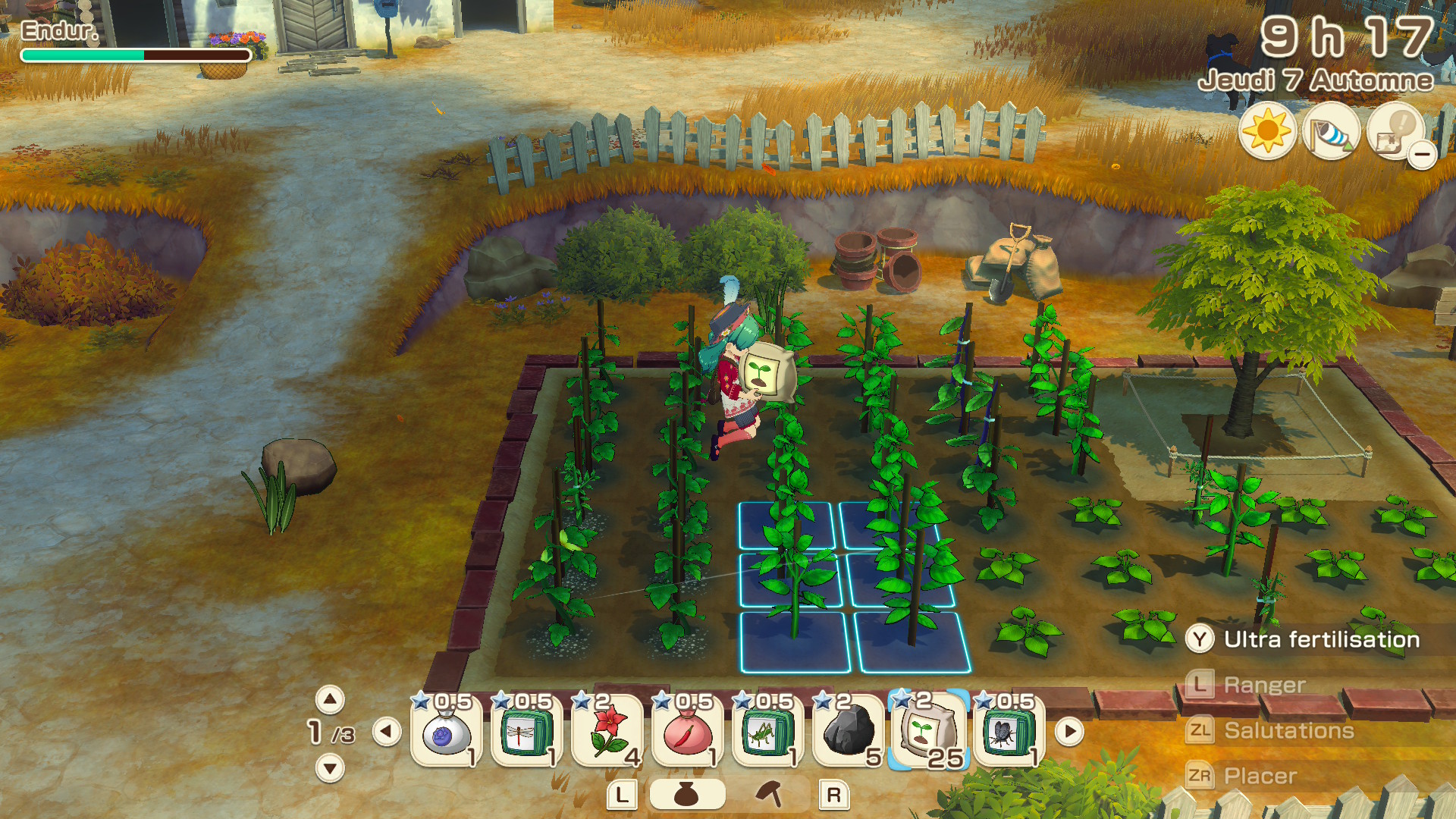 Dans un premier temps, le maire de Zéphyria nous explique les fondamentaux : labourer le champ, planter ses graines, arroser, fertiliser… tant de mécaniques dont les amateurs du genre sont surement familiers, il est donc bienvenue que Marvelous ait pensé à rendre les tutoriels souvent optionnels.