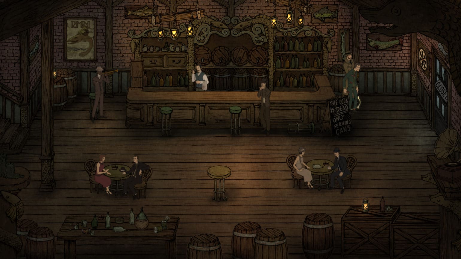 Tout en 2D, Stygian: Reign of the Old Ones a fait le choix d’une esthétique rétro au service de son propos. Le jeu a des allures de gravures façon Foujita, ou encore de celles que l’on pouvait trouver dans les magazines de mode des années 20, l’époque qu’il raconte (les fameuses “gravures de mode” de l’expression).