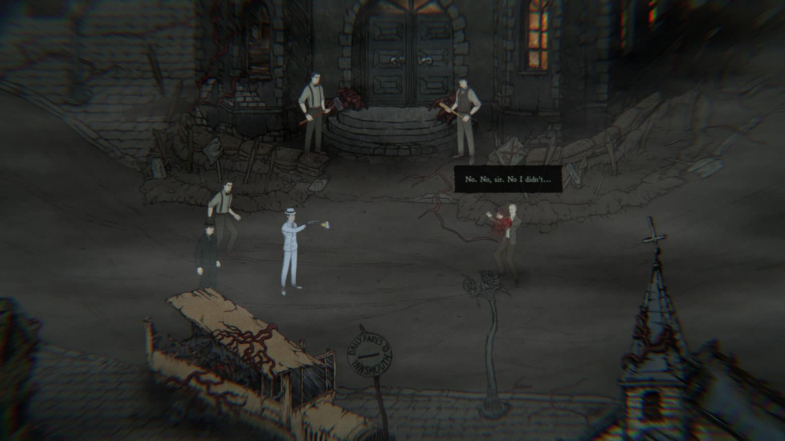 Un autre aspect de Lovecraft qui n’est pas épargné par le titre, c’est le côté malsain de certaines de ses histoires, comme le racisme qui imprègne son œuvre. On rencontrera ainsi un “comédien” qui semble avoir basculé dans la folie, mais continue ses pantomimes en arborant un odieux blackface. Toujours dans cette idée de proposer autant de roleplay que possible, le jeu nous laissera alors le choix de nous indigner, ou pas…