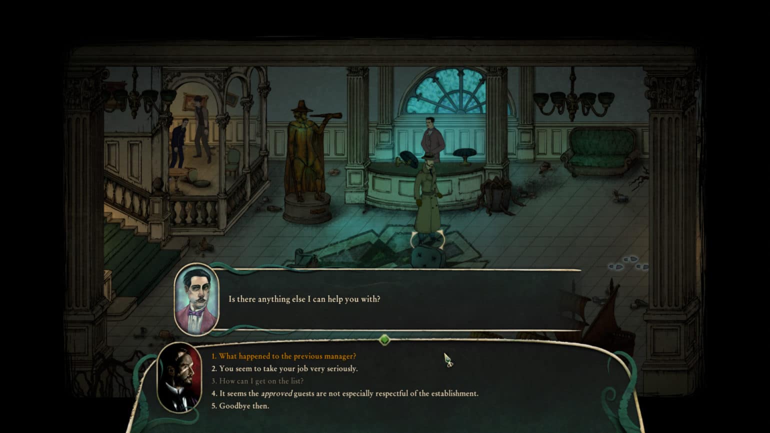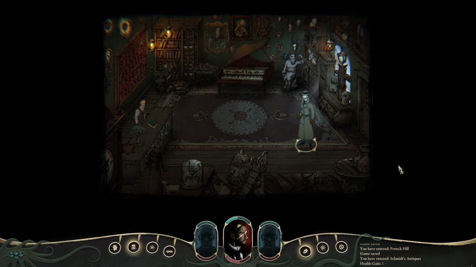 Stygian: Reign of the Old Ones est donc surtout une adaptation de l’Appel de Cthulhu version Chaosium (l’éditeur historique du JdR papier), mais qui n’oublie pas ses classiques lovecraftiens. La santé mentale sera ainsi une caractéristique primordiale pendant la partie, plus encore que la barre de vie. Non seulement elle se réduira à chaque manifestation particulièrement dérangeante (créature inhumaine, meurtre cruel, rituel malsain…), avec à chaque fois le risque de basculer dans la folie (ce qui correspond à un bon vieux Game Over), mais son niveau aura une incidence directe sur le jeu. Par exemple, en ayant perdu un certain niveau de santé mentale, vous devenez parano. Les choix de dialogues en sont affectés, révélant votre état…