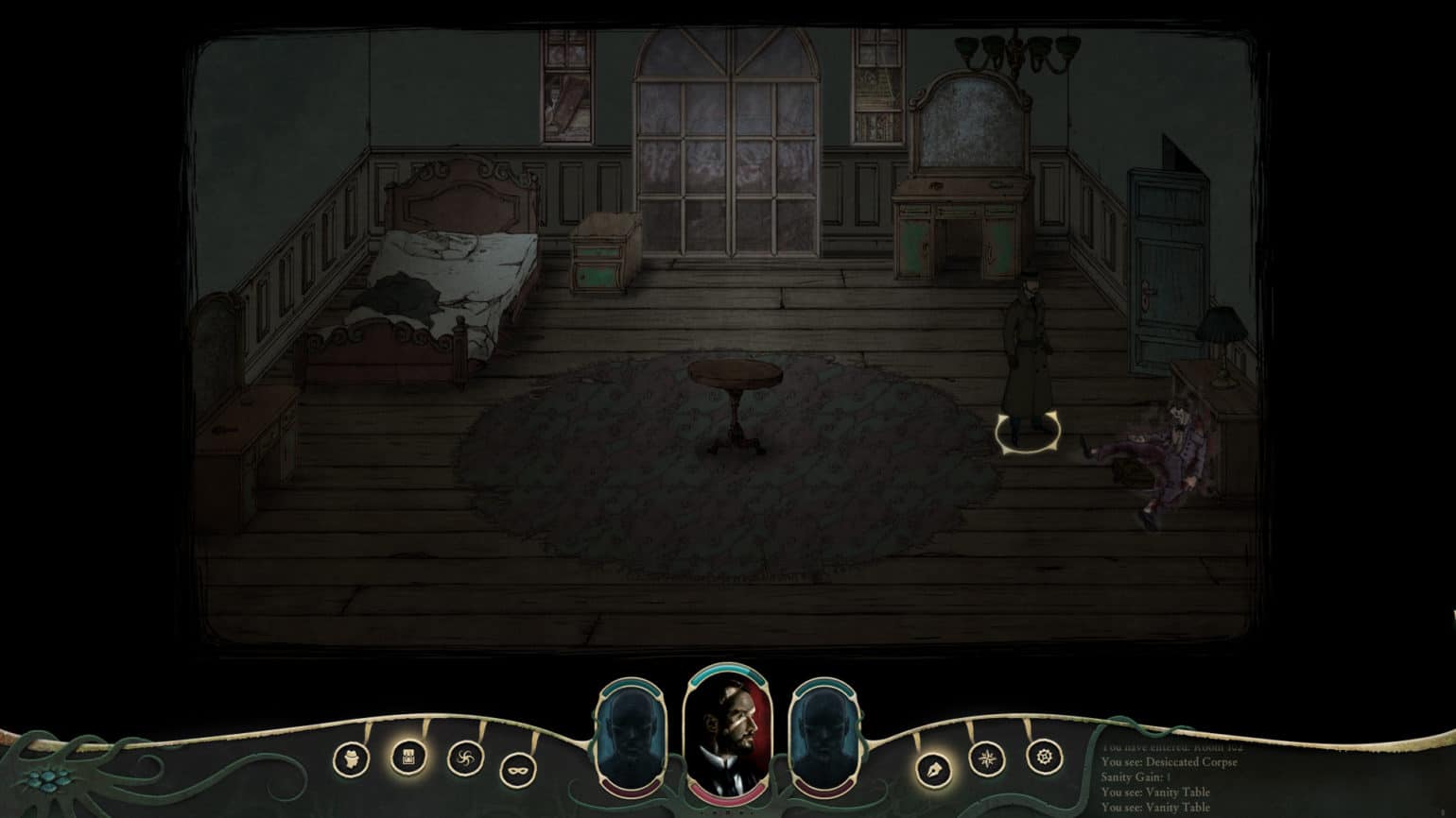 Heureusement, on pourra trouver de l’aide chez certains PNJ pour former un “party” comme dans les J-RPG. Mais encore, l’une des bonnes idées de Stygian, c’est que pour remporter un combat, il ne faut pas forcément éliminer tous les ennemis : se dégager une issue et fuir est aussi un moyen d’avancer. On est au cœur du Mythe de Cthulhu, et la survie est déjà une belle victoire !