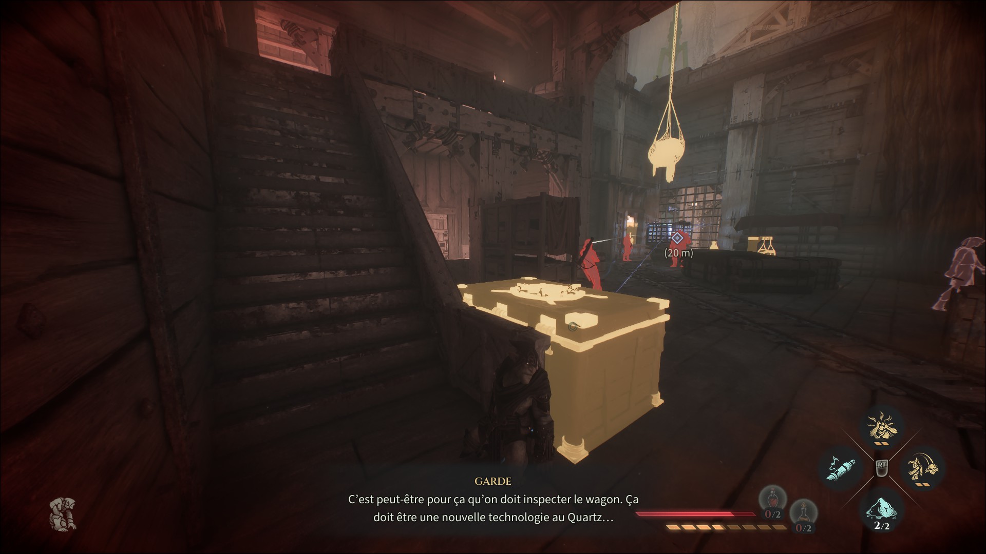 Les rares indications viennent de PNJ qui vous orientent avec des directives aussi vagues que la verticalité des lieux : un personnage nous demande de libérer sa famille, prisonnière « dans les niveaux inférieurs ». Quand un niveau s’étend sur une dizaine d’étages, cela ne veut pas dire grand-chose. Il faut saluer le choix de Cyanide de ne pas tapisser ses niveaux d’indicateurs omniprésents, ce qui renforce l’immersion et pousse à l’exploration. Mais dans le dernier tiers du jeu, quand les allers-retours s’allongent, cette absence de guidage peut transformer la réflexion en errance.