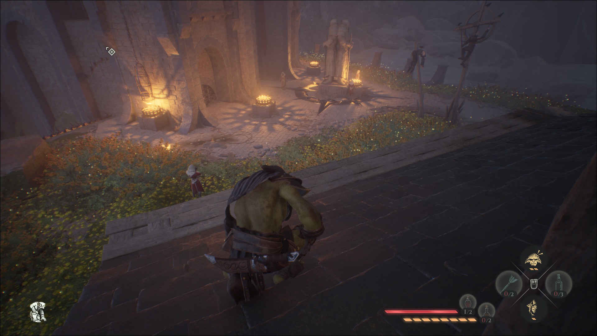 C’est dans ces moments que Styx: Blades of Greed révèle toute sa saveur : quand un plan émergé de la pure observation se déroule sans accroc et que l’on se sent, l’espace d’un instant, aussi malin que le gobelin. Le jeu ne nous dit jamais quoi faire. C’est un immense bac-à-sable dont on est le seul maître. On trouvera également divers composants pour fabriquer des gadgets comme des mines d’acide, des crochets ou des fioles et bien d’autres choses. Les ressources étant rares, il faudra donc les utiliser avec parcimonie.