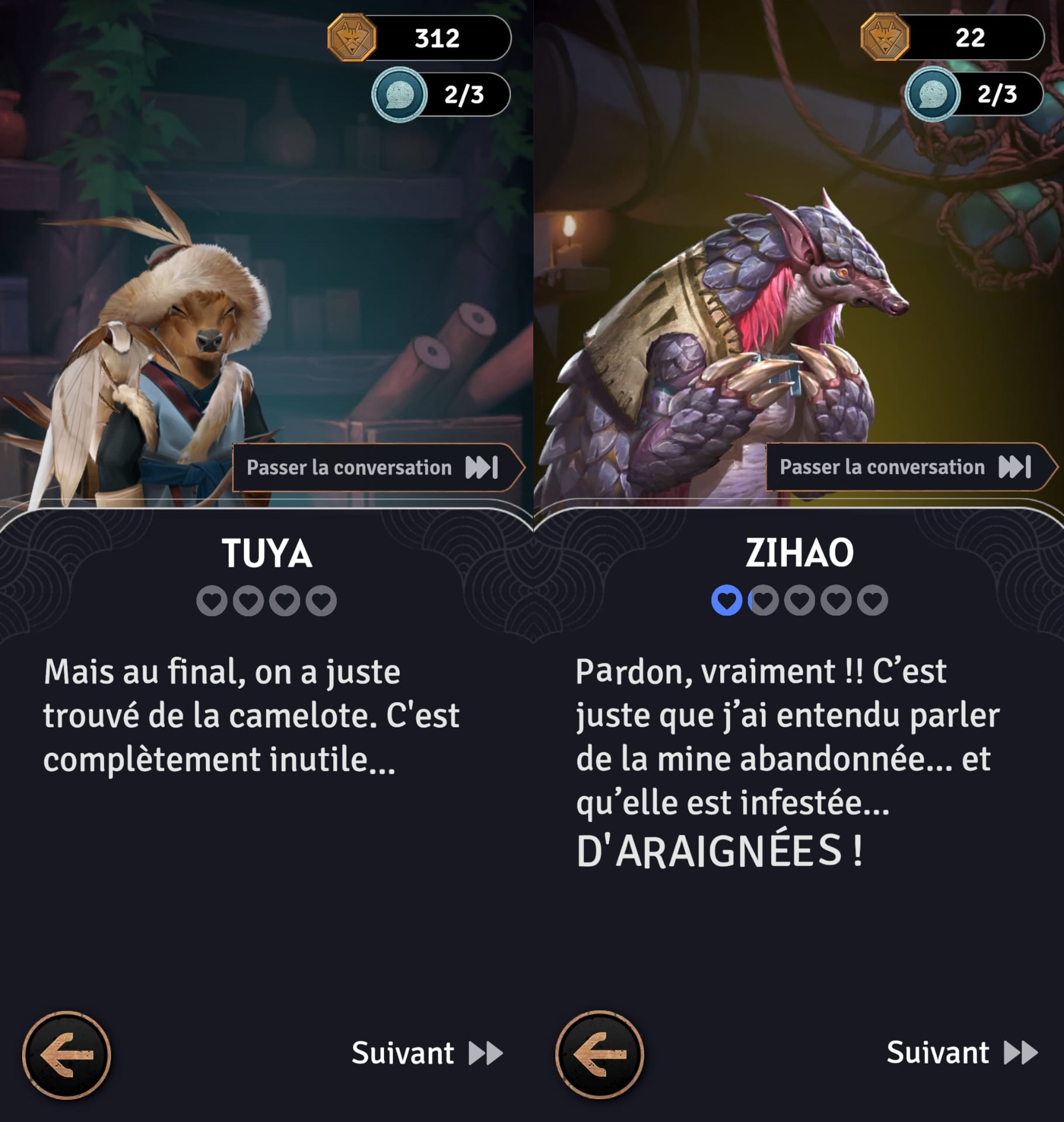 La phase de discussion et de vagabondage se déroule sur les téléphones des joueurs, offrant ainsi une petite pause entre les missions. Chacun peut en profiter pour avancer à son propre rythme, que ce soit pour améliorer ses relations avec les habitants d’Arden, contribuer à la reconstruction de la ville et débloquer des améliorations, acheter des objets utiles pour les missions à venir, ou encore réorganiser son personnage pour préparer les événements à venir. Cette phase permet une certaine liberté et personnalisation avant de replonger dans l’action.