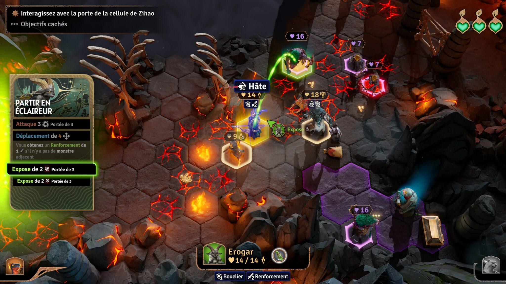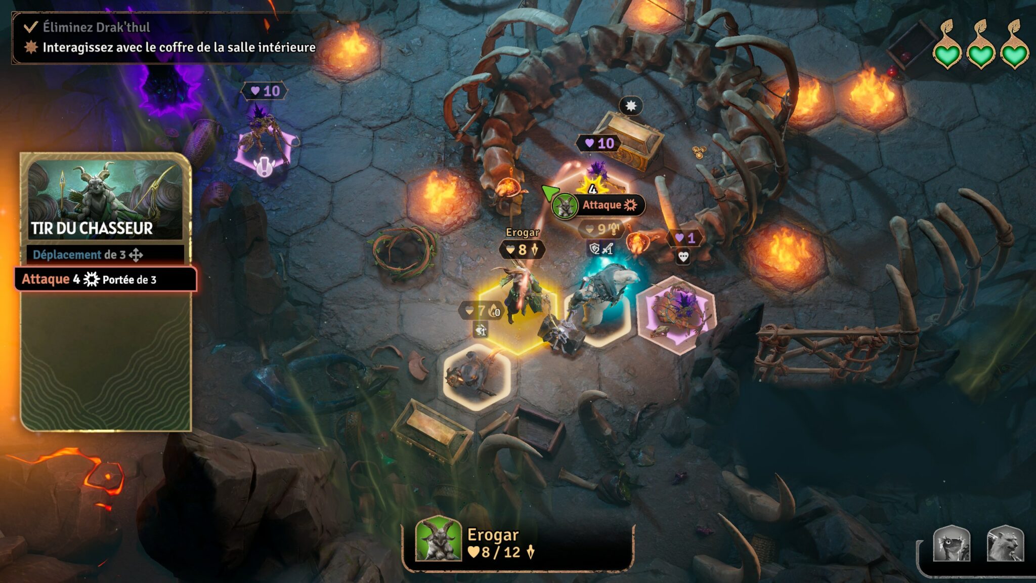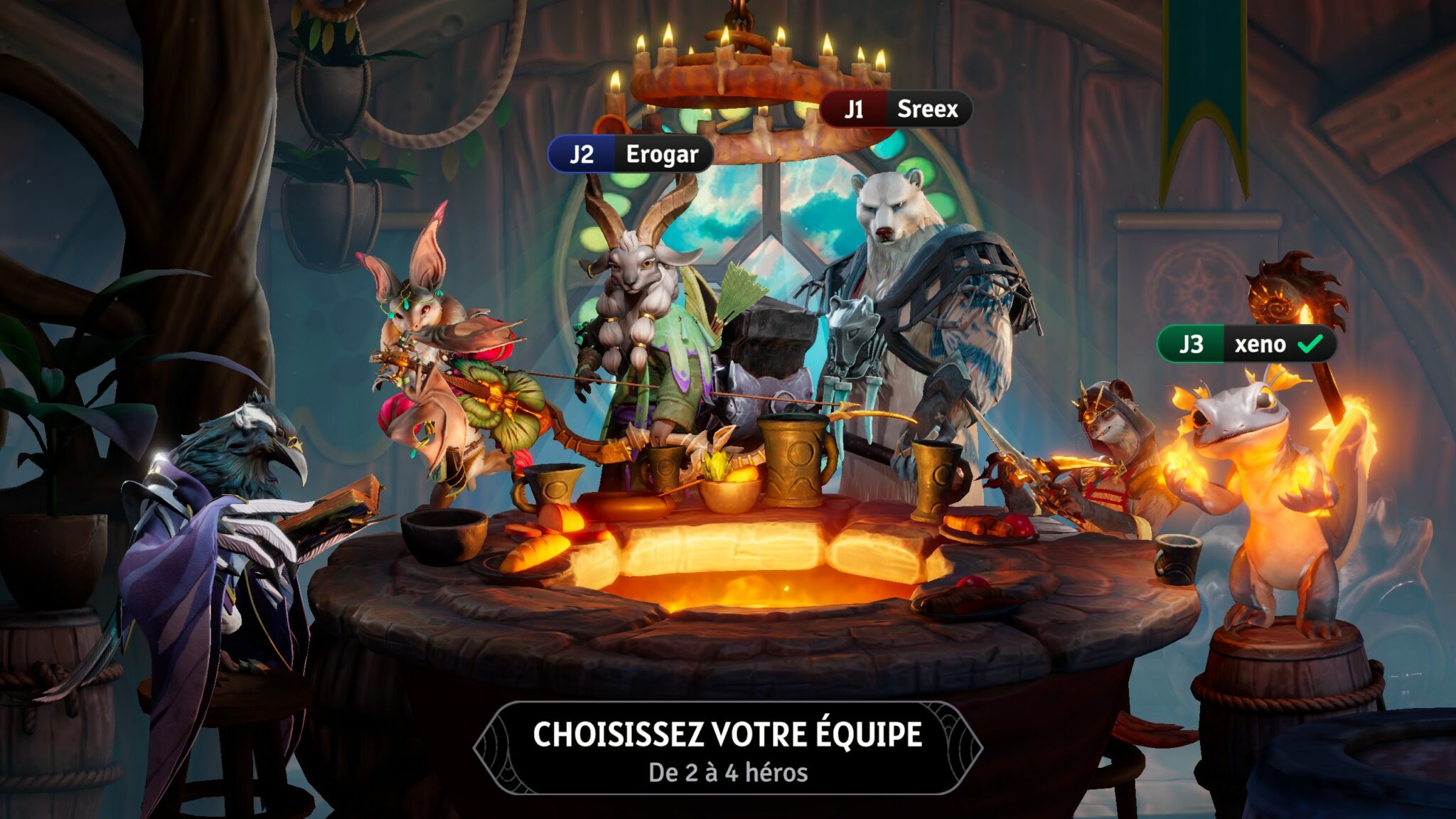 La manière dont votre groupe affronte les défis dépendra largement de votre composition : une équipe emmenée par le Berzerker Ours n’agira pas comme celle guidée par le Barde Chauve-Souris. Chaque personnage dispose de son propre ensemble d’outils, matérialisés par un deck de cartes unique qui définit ses actions et son style de jeu.