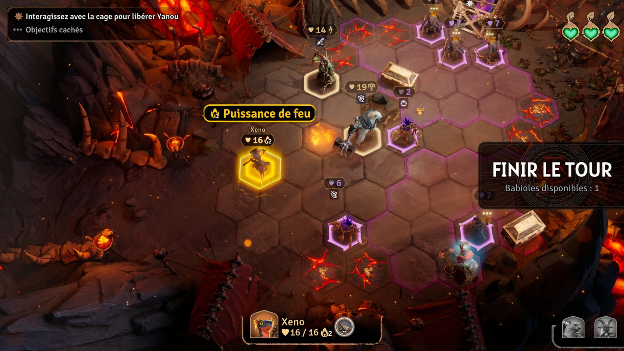 Il est également possible d’utiliser un des objets en votre possession pour ajouter quelques options supplémentaires à votre prise de décision. Une fois que tous les joueurs ont joué leur carte, c’est au tour des ennemis d’agir, en suivant des règles préétablies, connues à l’avance.