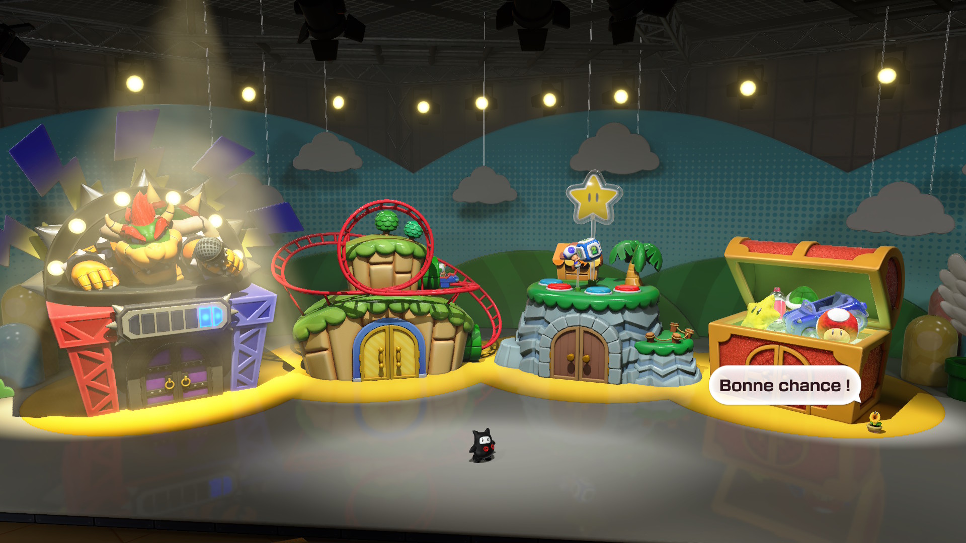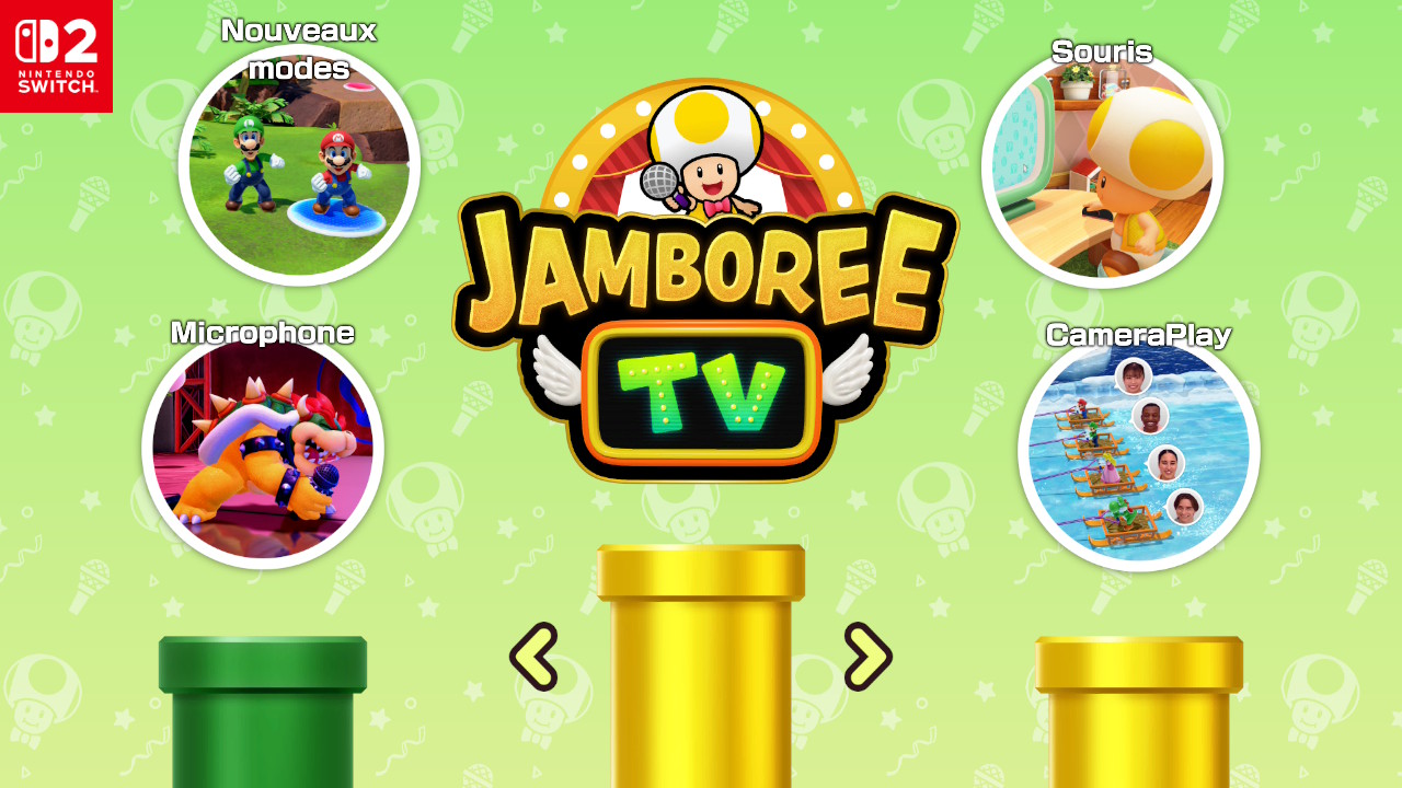 Et c’est ici qu’intervient le mode Jamboree TV, exclusif à la Switch 2. Comme pour Super Mario 3D World + Bowser’s Fury, au démarrage, le menu du jeu nous propose deux alternatives : Super Mario Party Jamboree, ou Jamboree TV. Le premier choix nous amène vers le jeu Switch que l’on connait déjà, et dont on vous avait dit tout le bien qu’on en pense lors de sa sortie.