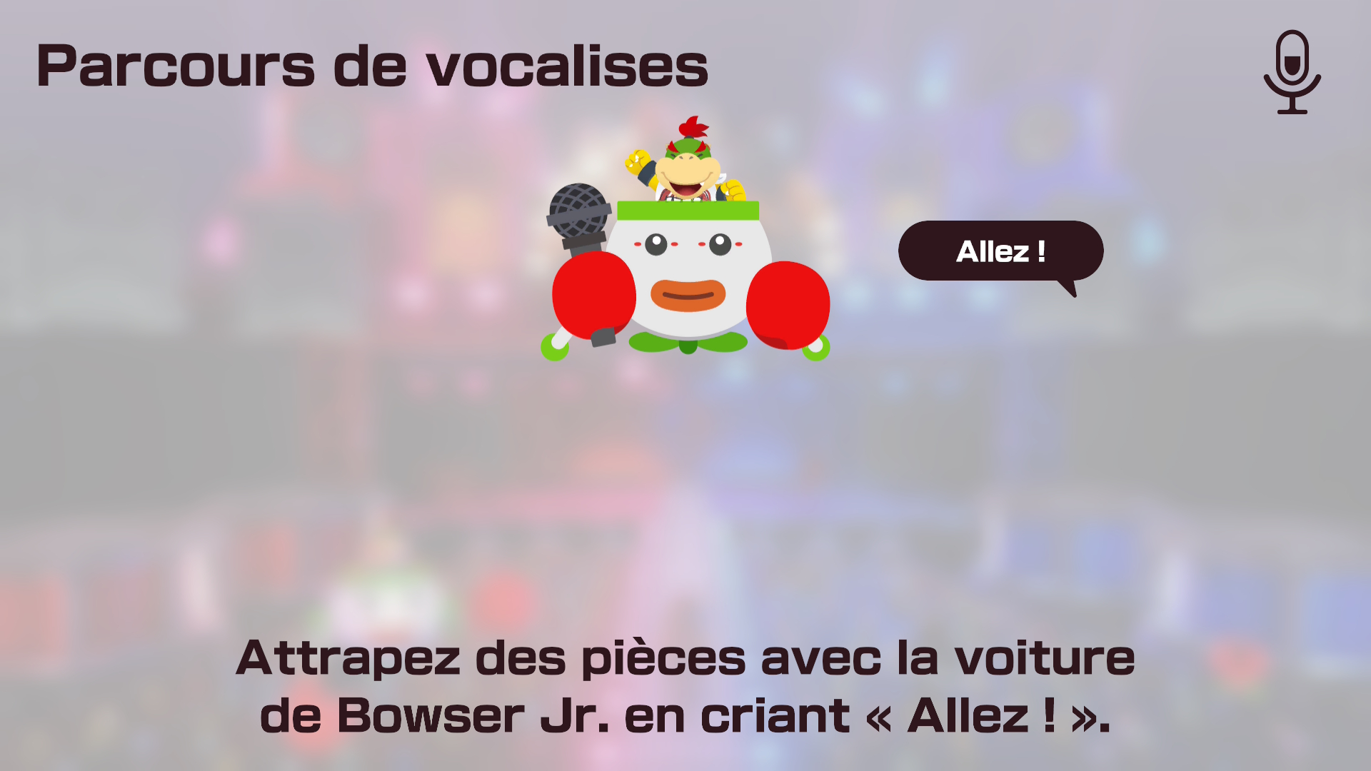 Le premier se joue au micro, ou avec une caméra, et rappelle finalement les jeux Kinect : on tape, via son avatar à l’écran, un maximum de fois possible dans un bloc « ? », on essaie de garder des Goombas en équilibre sur notre tête, ou l’on crie et l’on remue dans tous les sens pour satisfaire le Roi Bowser. Assez rigolo en local, on fait l’imbécile en groupe devant son écran (à l’image ou au micro), ce qui fonctionne souvent en termes d’ambiance, mais est finalement assez limité question gameplay.
