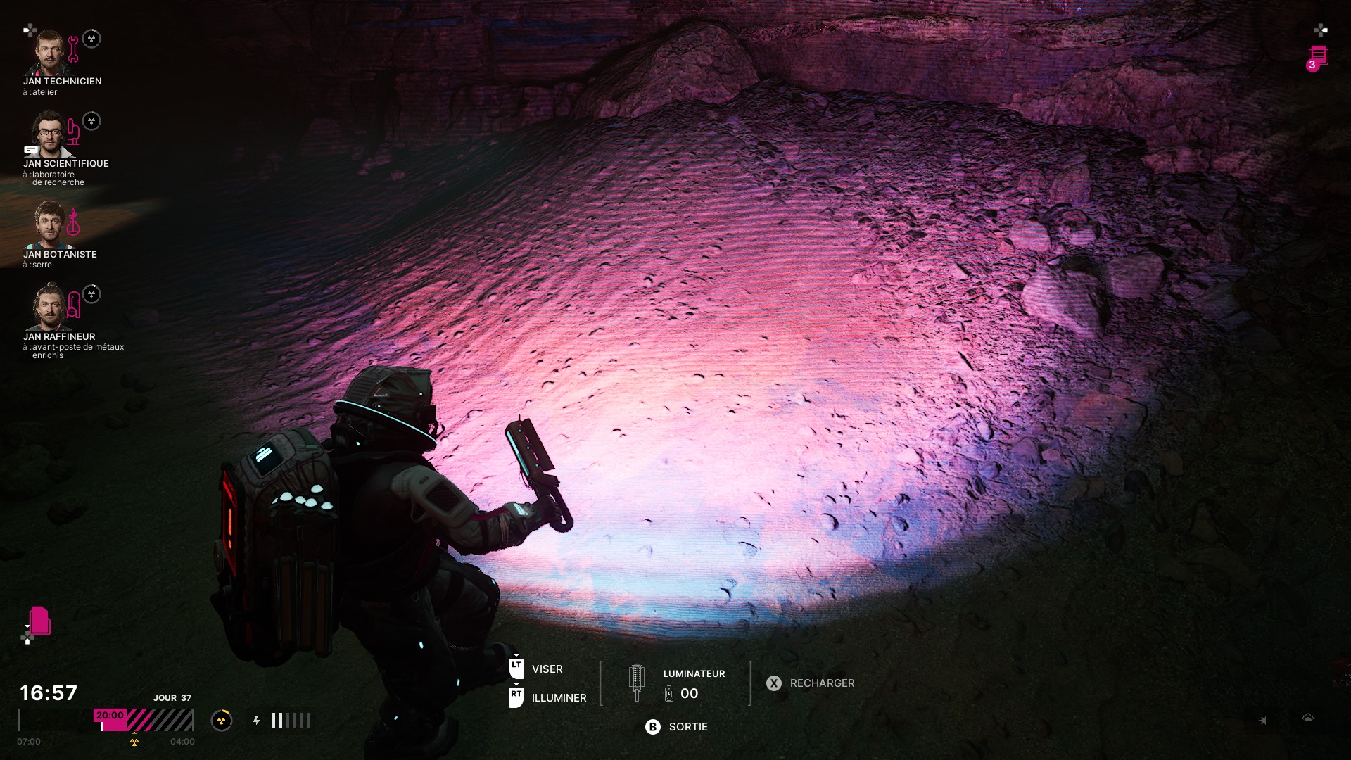 Bien entendu, la construction de tout ce matériel nécessite déjà des ressources, de même que l’exploration repose sur une combinaison en état de fonctionnement et munie de batteries, qui elles aussi réclament des ressources. À cette étape, même si rien n’est vraiment compliqué et complètement aligné avec le genre, on commence déjà à penser optimisation.