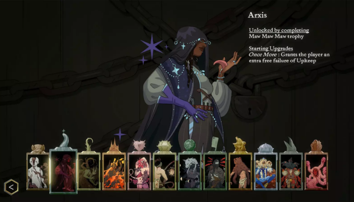 Avant de plonger dans une partie, il faut choisir un dieu du mal, qui définit vos objectifs et ressources de départ, un territoire parmi les quatre disponibles (déterminant la difficulté), ainsi qu’un gardien offrant un petit bonus. Après quelques runs, vous pourrez aussi équiper des charmes, suivant une logique similaire à celle d’Hollow Knight : un budget de trois emplacements et des bonus occupant un, deux ou trois slots. Ces améliorations boostent significativement votre productivité, toujours d’une manière utile.