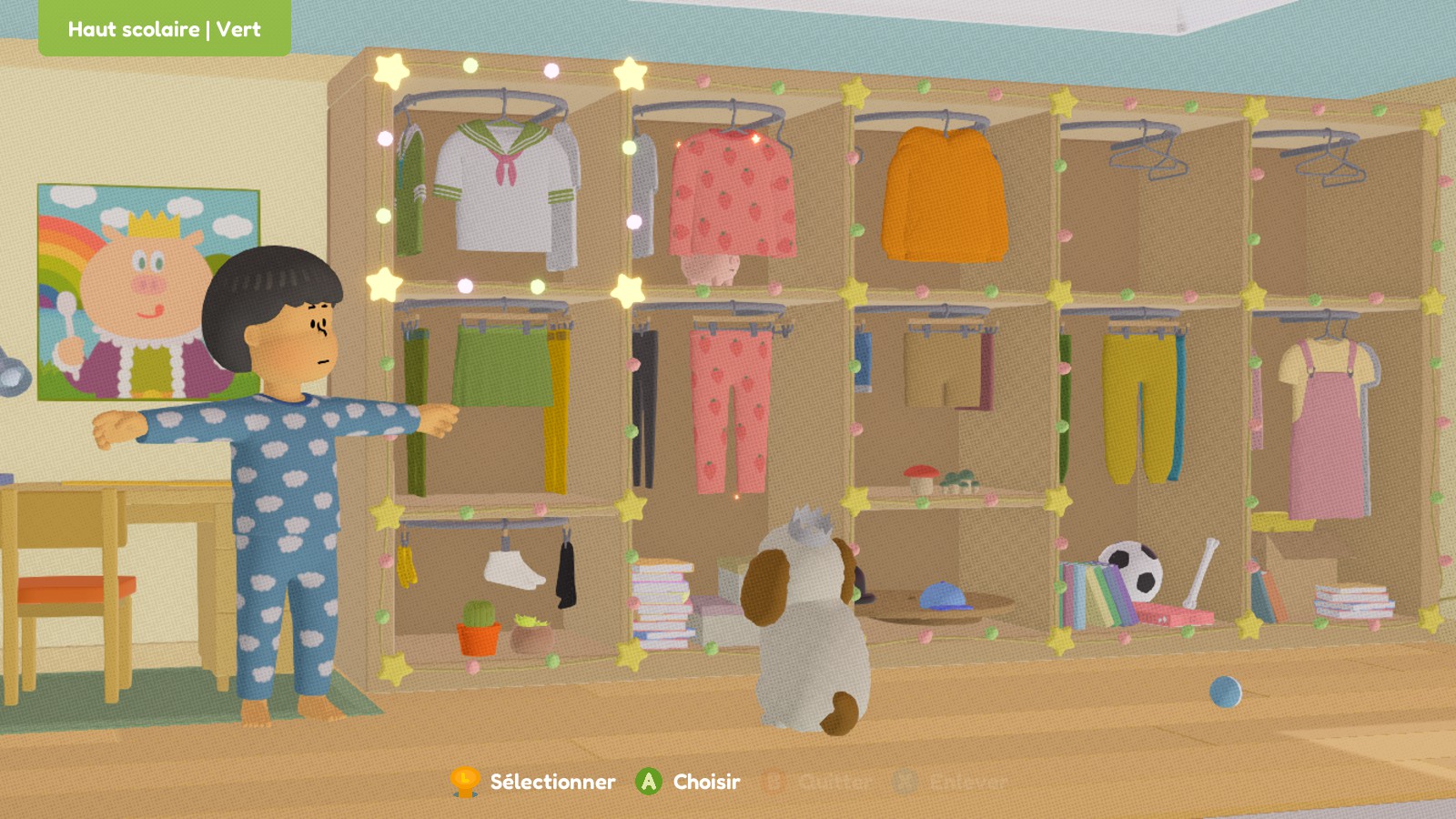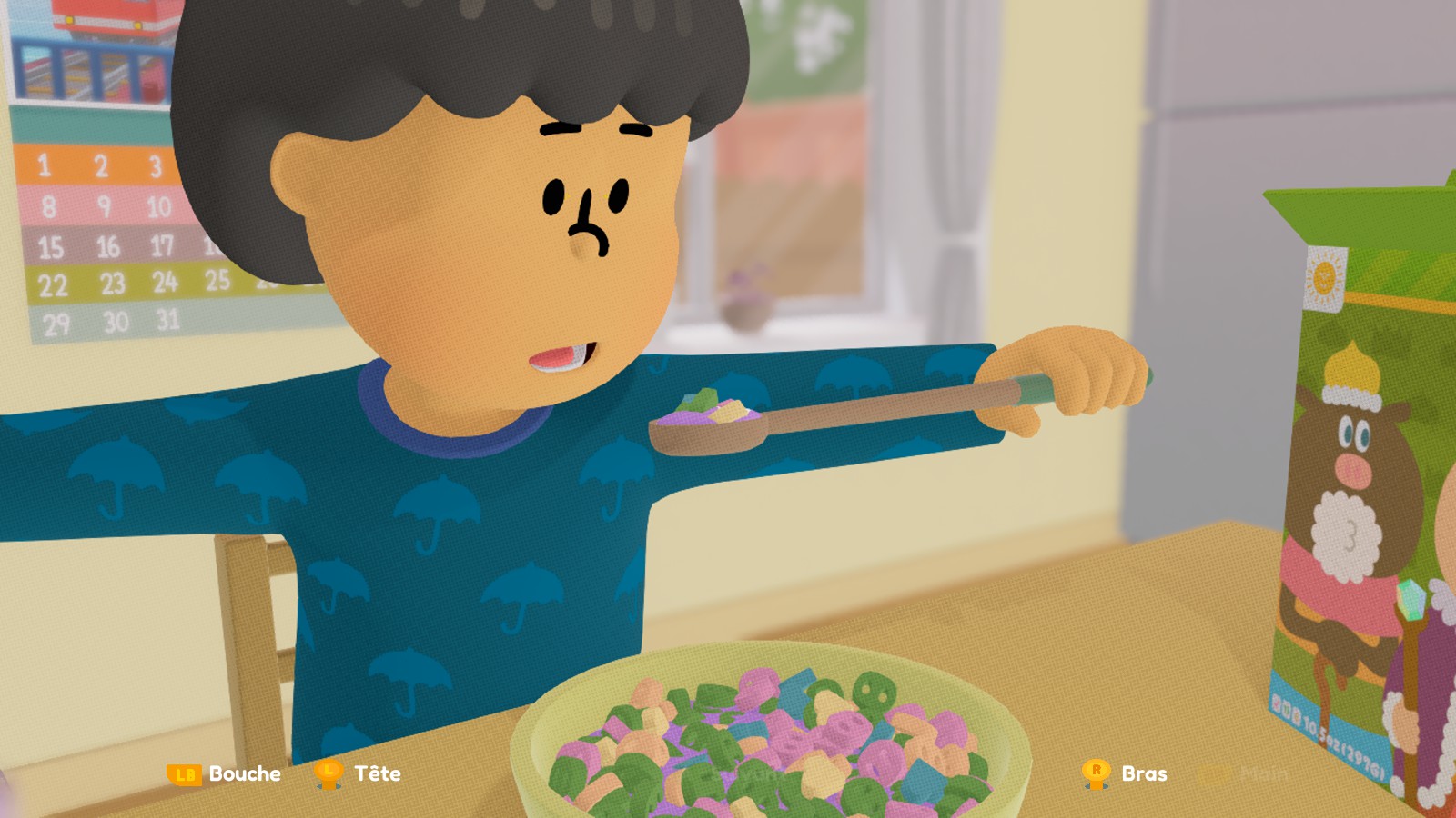 Le jeu démarre au treizième anniversaire de notre personnage : un Ado androgyne, dont on peut choisir l’apparence et les vêtements. Il/elle vit avec sa mère et son adorable petit chien, qui l’aide bien dans son quotidien. Car vivre avec les bras figés, ce n’est pas facile tous les jours : aller aux toilettes, se brosser les dents, s’habiller… autant de tâches qui seront l’occasion de tester quelques mécaniques de gameplay dès le début de la journée.