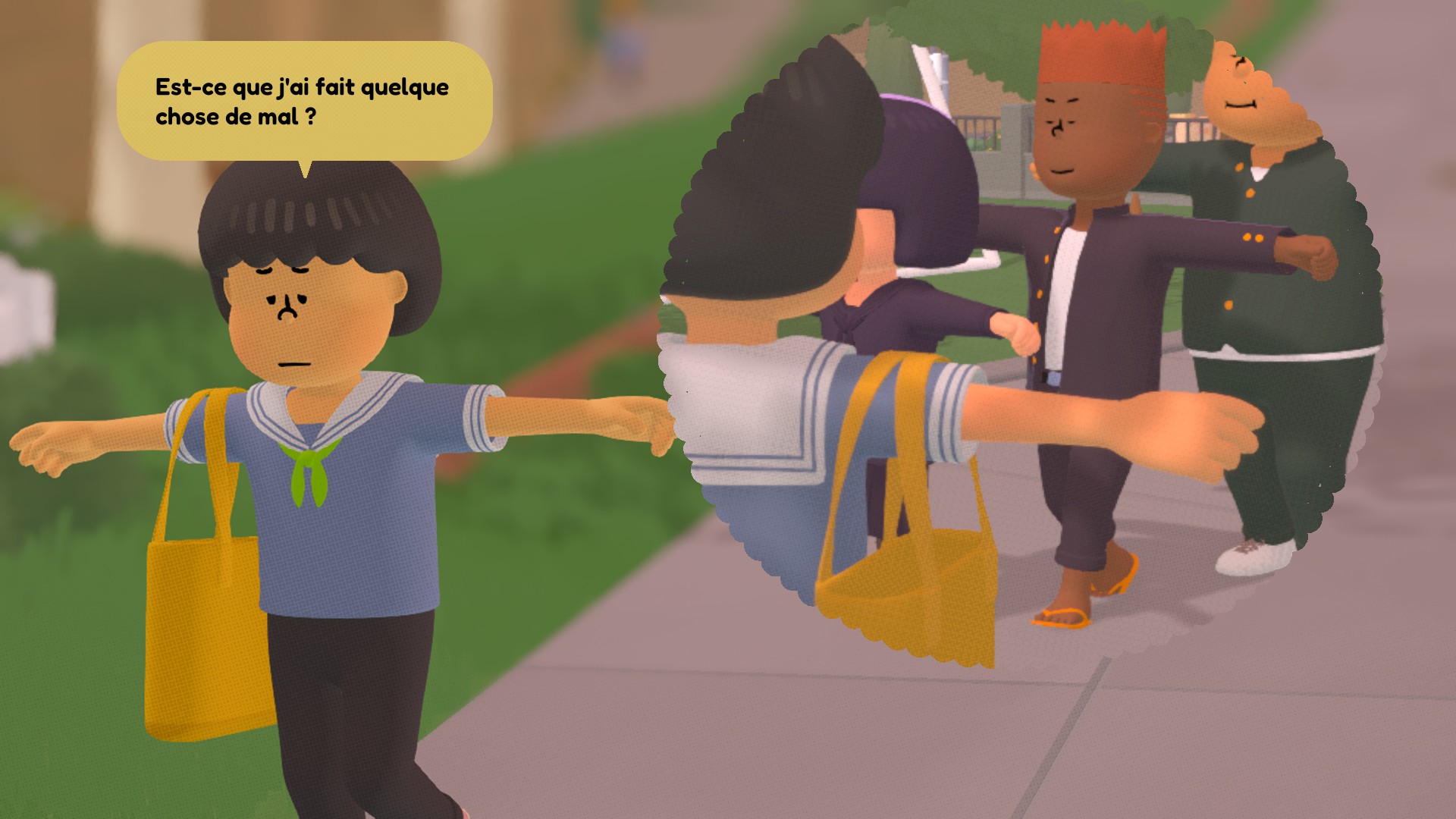 Le gameplay de To a T repose sur une suite de mini-jeux : routine matinale, jeu de rythme en cours d’EPS, mélanges de potions, parcours d’obstacles, petite enquête… Il y a une vraie variété, et certaines idées sont franchement excellentes, comme le système de contrôle du corps de l’Ado. On utilise les deux joysticks et les boutons L/R pour manipuler ses bras : une mécanique originale, clairement pensée pour la manette (qu’il faudra presque obligatoirement utiliser tel un vrai yakuza sur PC pour espérer vivre une bonne expérience).