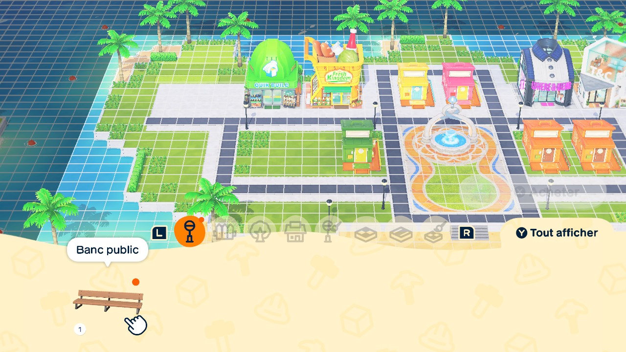 L’île de cet opus Switch est elle aussi complètement modulable. On peut placer les bâtiments où l’on veut, ajouter des décorations, ou tracer des routes à volonté. Là encore, l’imagination est la seule limite, et c’est en améliorant le niveau de son île qu’on débloquera toutes les options.