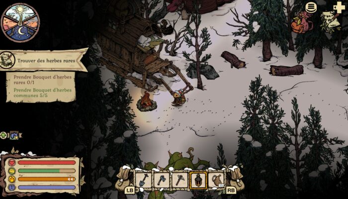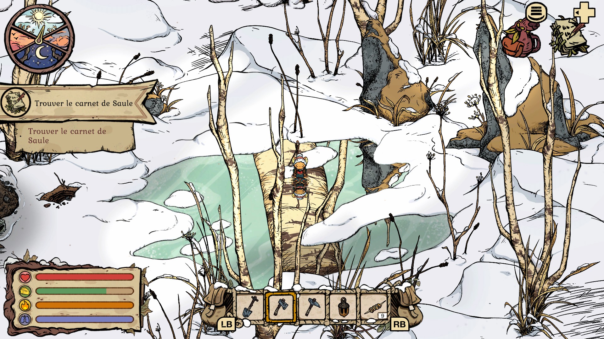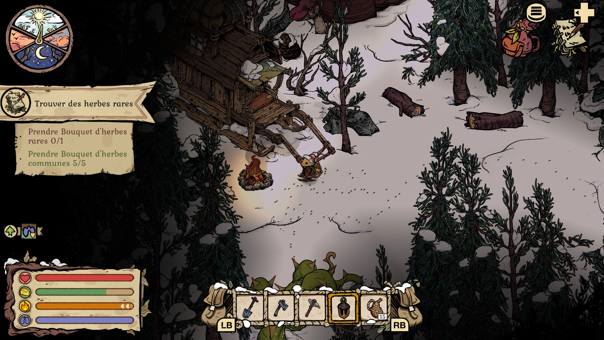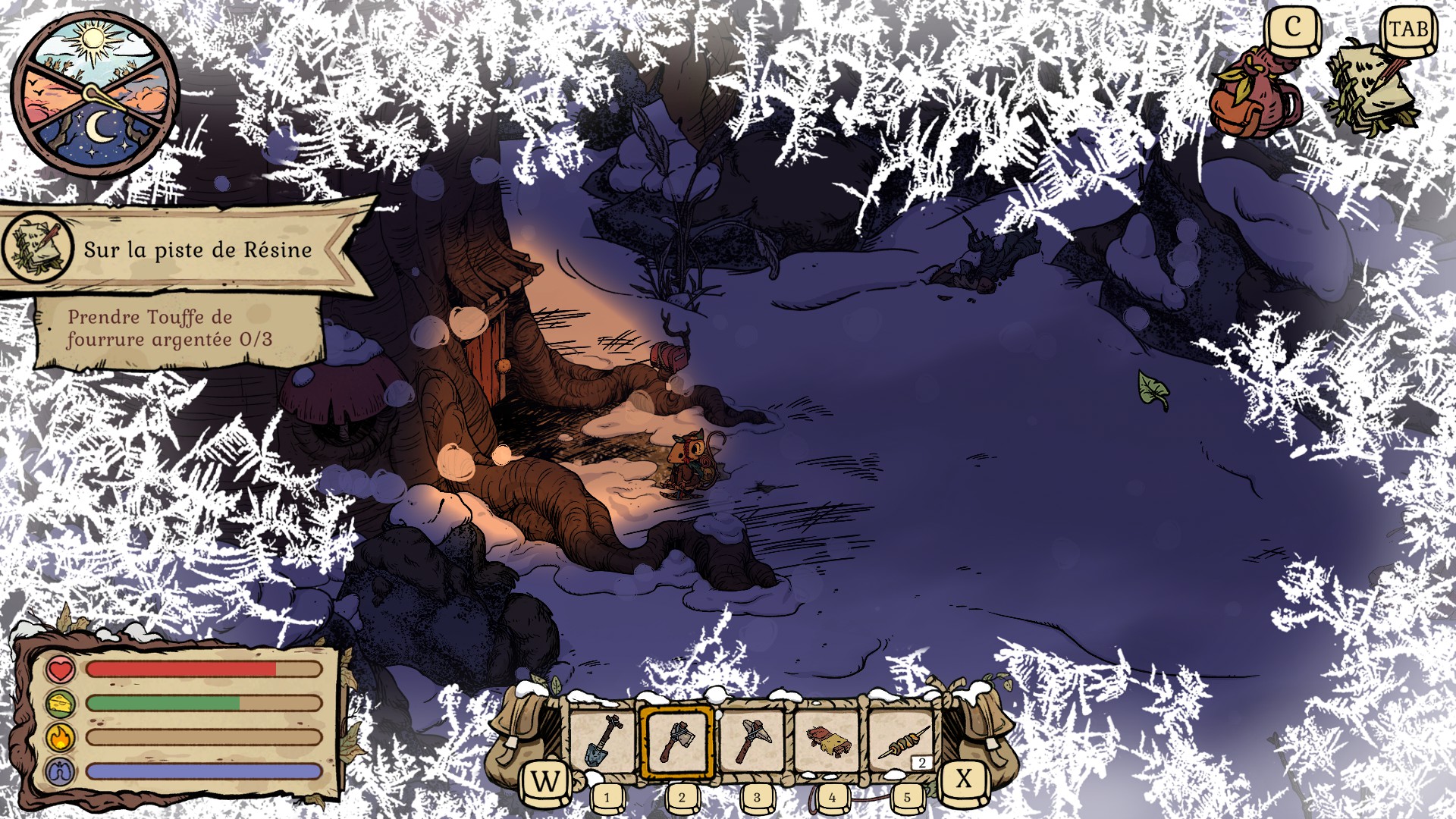 Ceci dit, si le titre ne propose pas un immense challenge et ne pousse pas les mécaniques de survie à l’extrême (on est loin d’un Don’t Starve, et on ne perd pas sa partie après un échec), la progression reste agréable et surtout, cohérente avec l’univers développé par le jeu. Même si on sent l’aspect survie et qu’on fait attention à bien se préparer avant de sortir, on joue plus à Winter Burrow pour la détente que pour la performance.