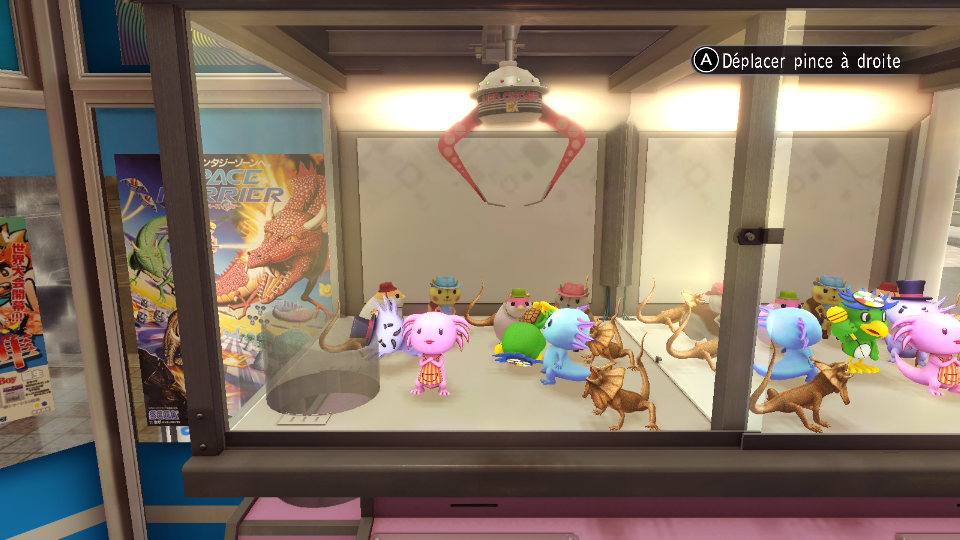 Autre comparaison difficile, les jeux d’arcade. L’un des plaisirs des jeux Yakuza, c’est d’aller visiter les salles d’arcade pour voir les jeux qui y sont proposés. Or ici, on ne trouvera que Space Harrier et Out Run, plus deux autres jeux qu’il faudra réussir à débloquer au cours de l’aventure. Un peu chiche quand on compare à ce que nous proposent les derniers titres… En parallèle, le titre n’est heureusement pas avare en mini-jeux, et on aura aussi l’occasion de jouer aux fléchettes, au billard, au shogi, de parier sur des combats de catch féminin (!) et bien évidemment de s’adonner au karaoké (et son morceau culte « Judgment », quel plaisir de le retrouver !), ou au Pocket Circuit.