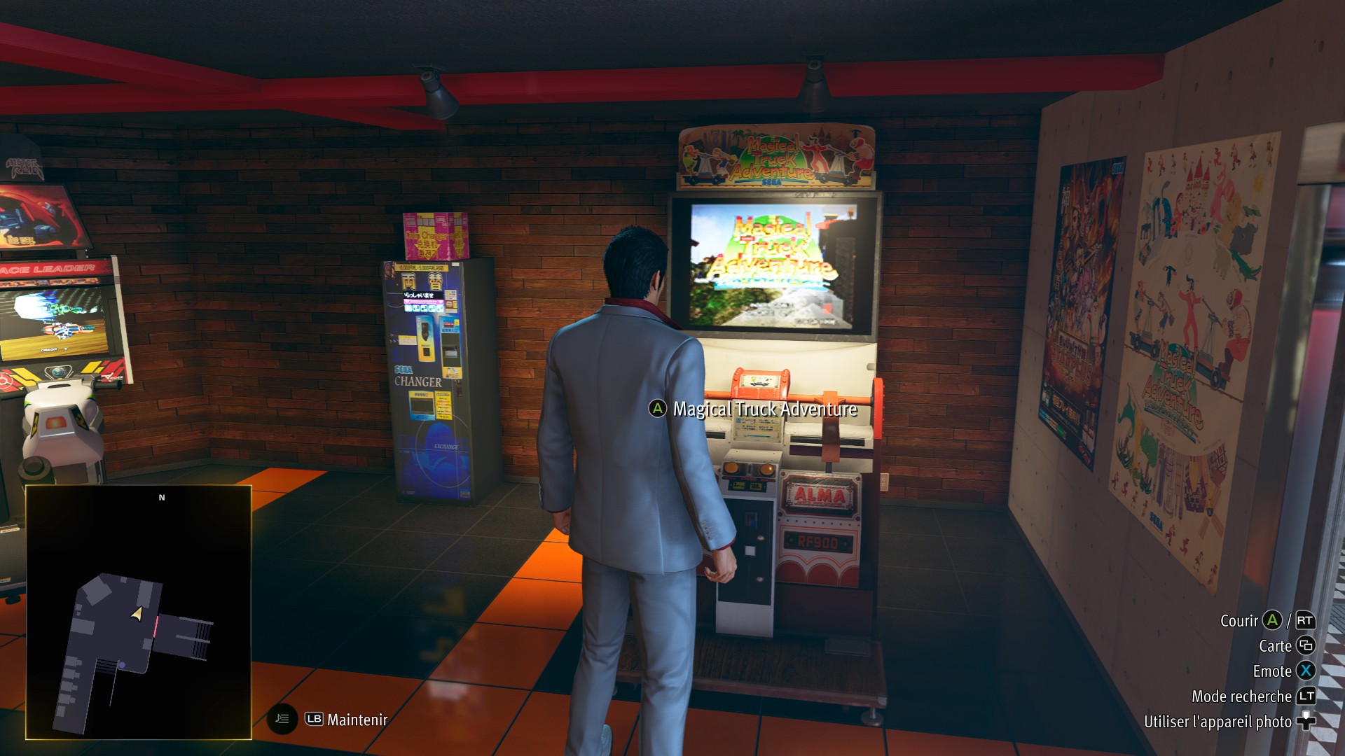 Mais au-delà des combats, ce qui fait encore une fois la richesse de l’épisode, c’est la collection de mini-jeux, qui confère ici peut-être à l’excès. Comme d’habitude, les salles SEGA sont accessibles et permettent de s’adonner à différents jeux d’arcade complets. Dans Yakuza 3 Kiwami, les bornes sont finalement peu nombreuses comparées à d’autres épisodes de la saga, d’abord parce qu’elles étaient tout aussi peu nombreuses dans le jeu original. Mais aussi parce que ce faible nombre est largement compensé par un autre moyen de lancer des mini-jeux : la Game Gear.
