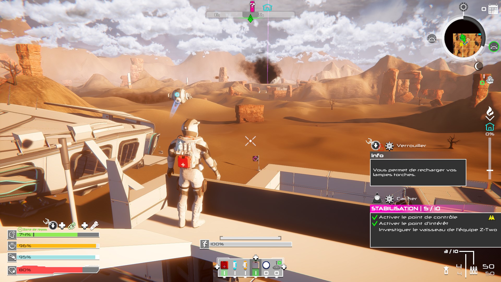S’il pourra utiliser des bases abandonnées disséminées sur la planète, Jensen devra néanmoins réunir les matériaux nécessaires à leur fonctionnement et à sa survie. D’autant plus que la planète n’est pas complètement inhabitée, et que le danger y règne (prenant entre-autre la forme d’un clin d’œil appuyé au Xénomorphe). Les stations n’ont d’ailleurs pas exactement été abandonnées, leurs occupant ayant été exterminés…