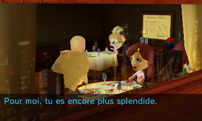 Une fois le lieu choisi votre Mii vous demandera de l’aider ! Il vous faudra cliquer sur le cœur central au bon moment lorsque vous verrez l’image de votre personnage dans la bulle. 1, 2, 3, 4 et elle accepte votre demande est la une cinématique se met en route. Mais un mariage n’est rien sans voyage de noce, vos Mii partiront dès la fin de la cinématique et vous ramèneront un petit cadeau !