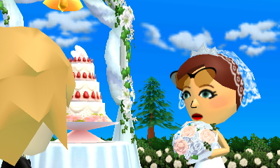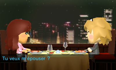 Pour certains les mariages sont plutôt long à se débloquer, je vais vous expliquer en quelques mots le déroulement du mariage. Tout d’abord, il faudra que vos deux Mii soit amoureux, ainsi au bout de quelques jours, voire quelques semaines, une icône cœur apparaitra, cliquez dessus et cela vous dira » je voudrais demander X au mariage est-ce le bon moment » à vous de cliquer sur oui ou non ! Une fois que vous aurez dit « oui » il vous demandera si vous souhaitez changer sa tenue, puis le lieu où vous voulez que la demande d’amour éternel s’effectue.