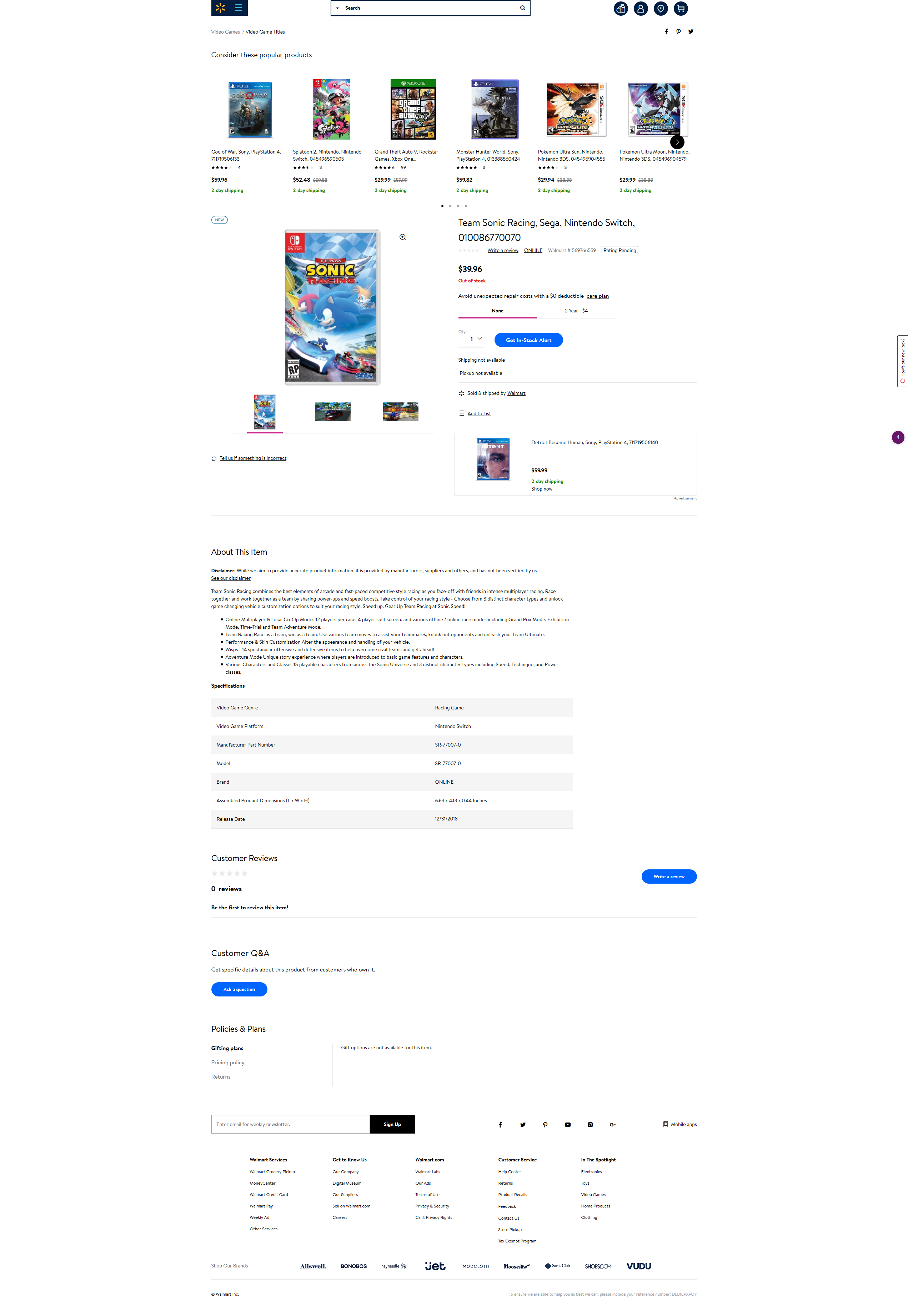 Bravo les gars de Walmart. Le moins qu’on puisse dire, c’est que vous nous facilitez le boulot, à nous autres rédacteurs. Après la fuite majeure qui a dévoilé une bonne partie des annonces de l’E3, l’entreprise américaine de grande distribution nous livre sur un plateau Team Sonic Racing, le prochain jeu qui mettra en scène le hérisson bleu aux baskets rouges, et à la vitesse supersonique.