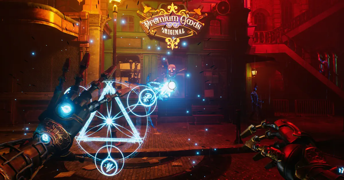 Les mécaniques de combat intègrent un outil central : un gant technomagique. Ce dispositif permet de manier des pouvoirs magiques de façon dynamique — par exemple, faire léviter un ennemi ou créer des illusions pour distraire les gardes. Ce système semble, pour le moment, ne pas se limiter à l’esthétique, il devrait introduire des possibilités d’interaction originales et une variété dans les affrontements. Et là, on pense aussi à Half-Life…