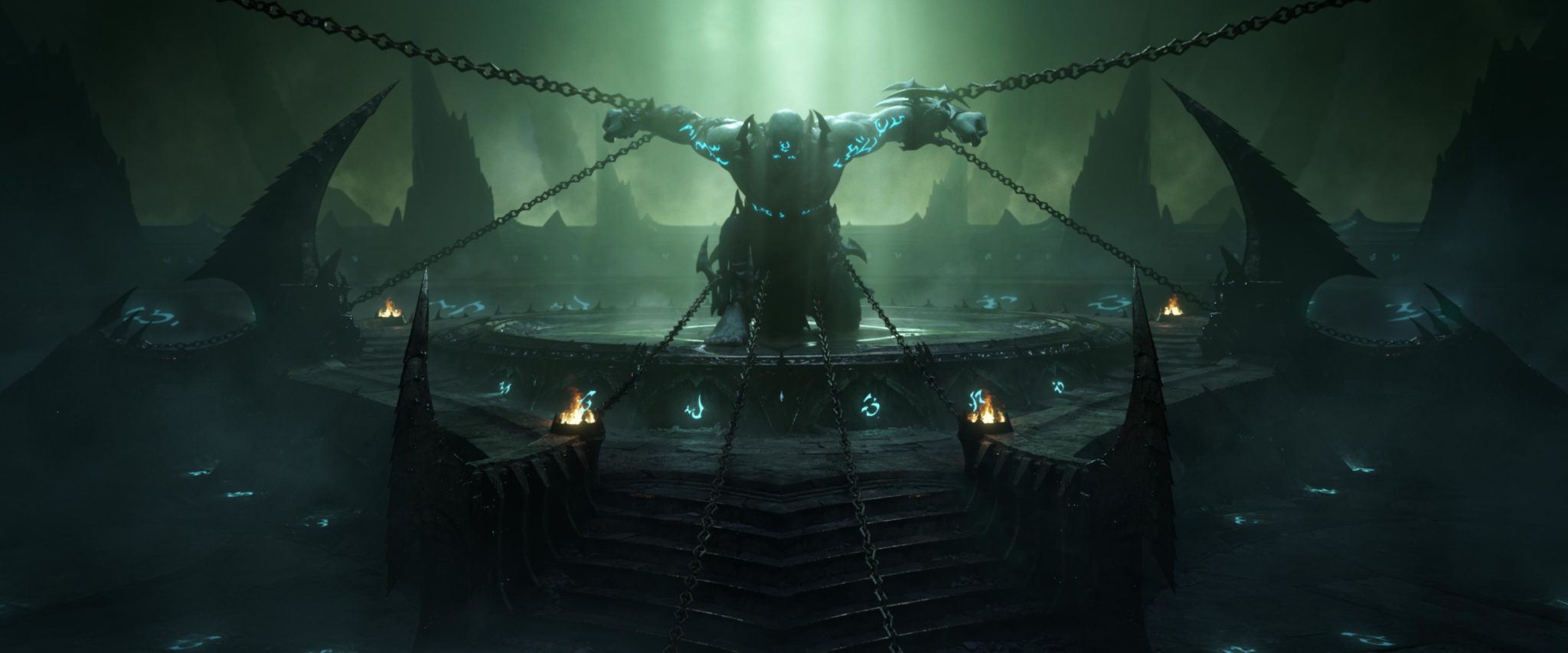 Cette fois, pas de nouvelle île, pas de retour dans le temps, pas d’anciens ennemis réveillés, mais bien ce qui semble être l’équivalent des cieux et des enfers. C’est face à un ennemi bien plus dangereux qu’Arthas, la Légion ardente et la Horde de fer réunis que vont être confrontés les joueurs. Celui qu’on nomme : Le Geôlier.